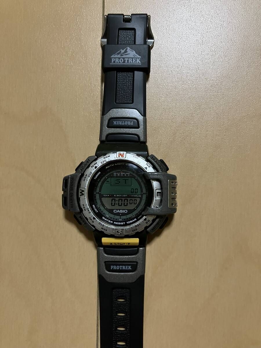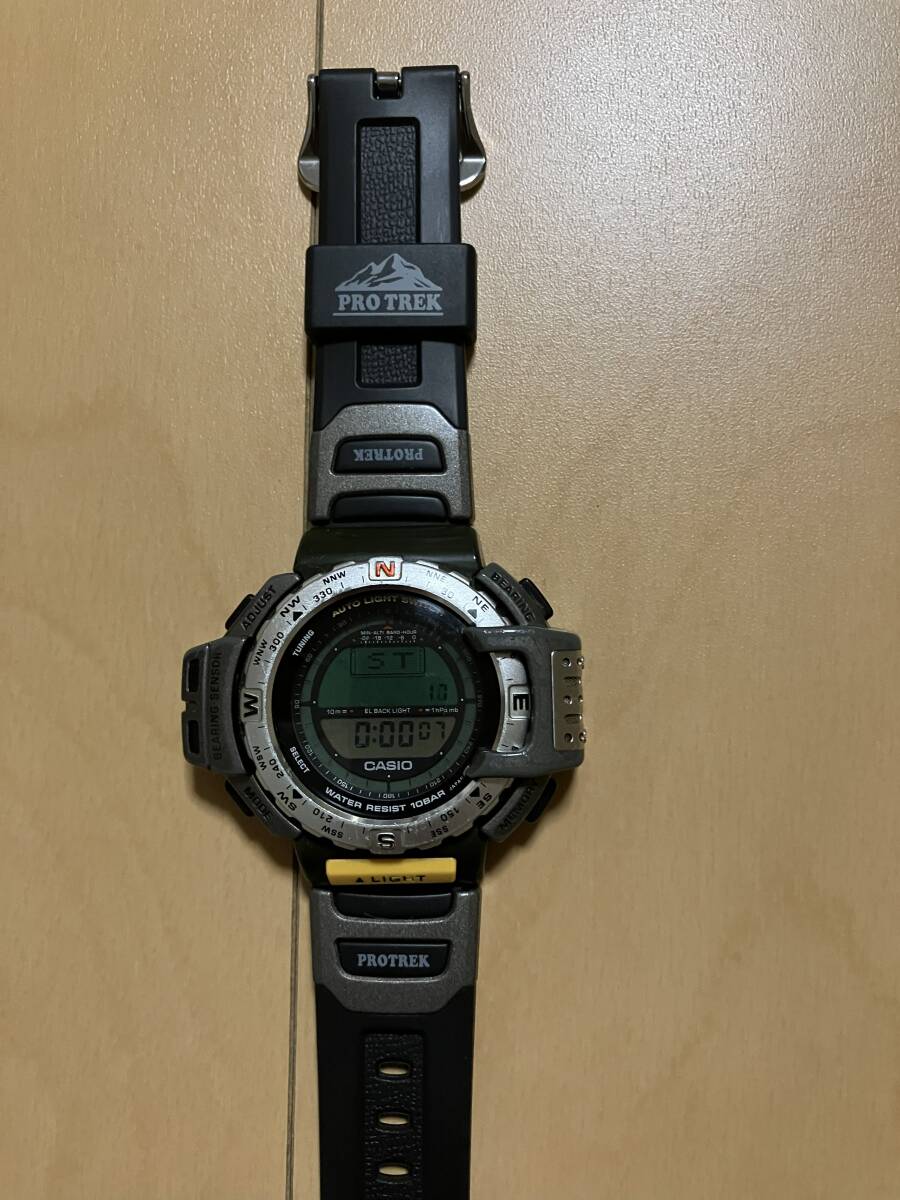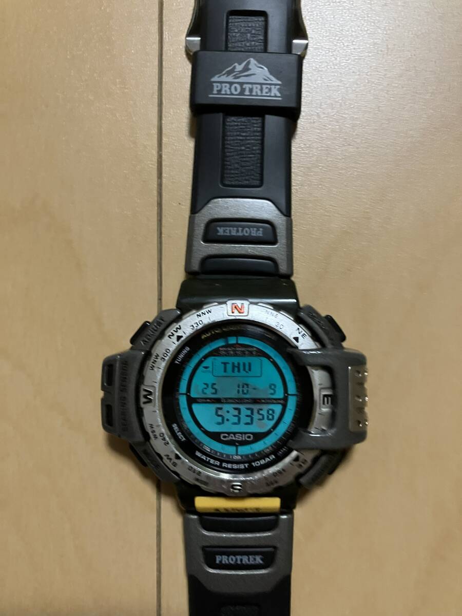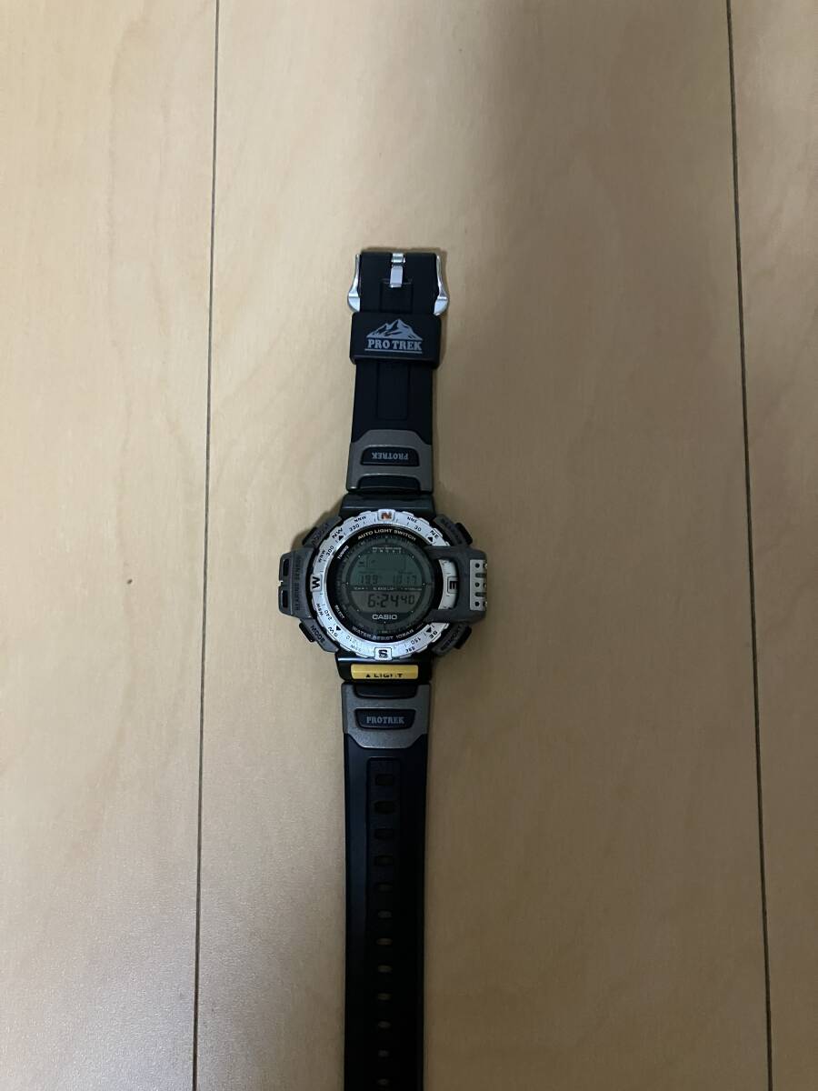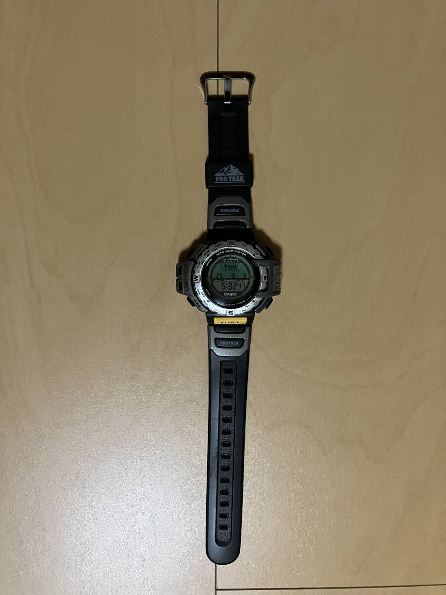 発売されて30年以上経ちますが、比較的綺麗な状態です。本商品は、時計本体はWWFモデル(ELバックライト:トラ)のメーカーオリジナルの状態です。ベルトのみCASIO純正のPROTREK専用のベルトに交換しています。