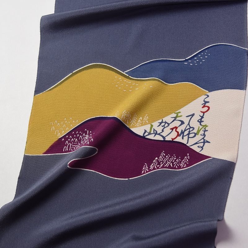 【ほりだし堂】 『栗山工房』謹製『栗山紅型』 百人一首 九寸名古屋帯 灰色 正絹 浜ちりめん