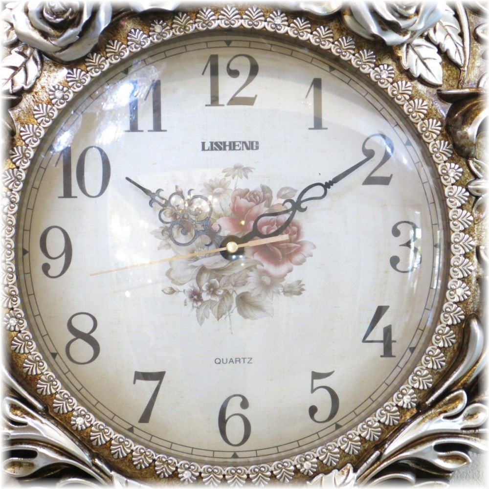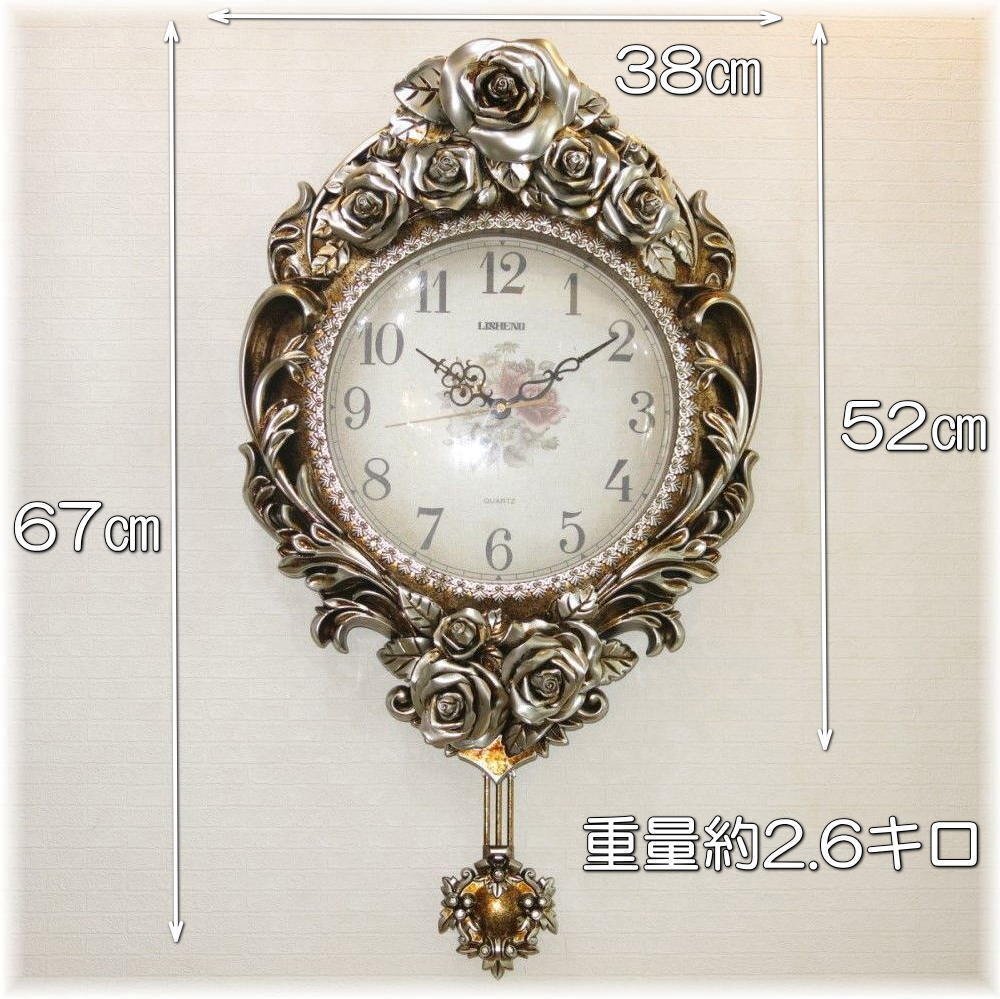 ![]() 【送料無料!】新品 アンティーク調 薔薇モチーフ 壁掛け 振り子時計 【送料無料!】新品 アンティーク調 薔薇モチーフ 壁掛け 振り子時計 ☆デザインはアンティーク調で薔薇のモチーフを施した、とてもオシャレで豪華な壁掛け時計です ☆カラーはシルバーベースに少し光沢のあるブラウン系のペイントをアンティーク調に施しております ☆サイズは時計本体 縦52cm 横38cm 振り子脱着可能で振り子装着時縦67cm 重量2.6キロ です ☆単3電池2本使用(別売) ※秒針のカチカチ音はございません※ ☆豪華なLISHENG製壁掛け時計を是非この機会に! ![]() | |