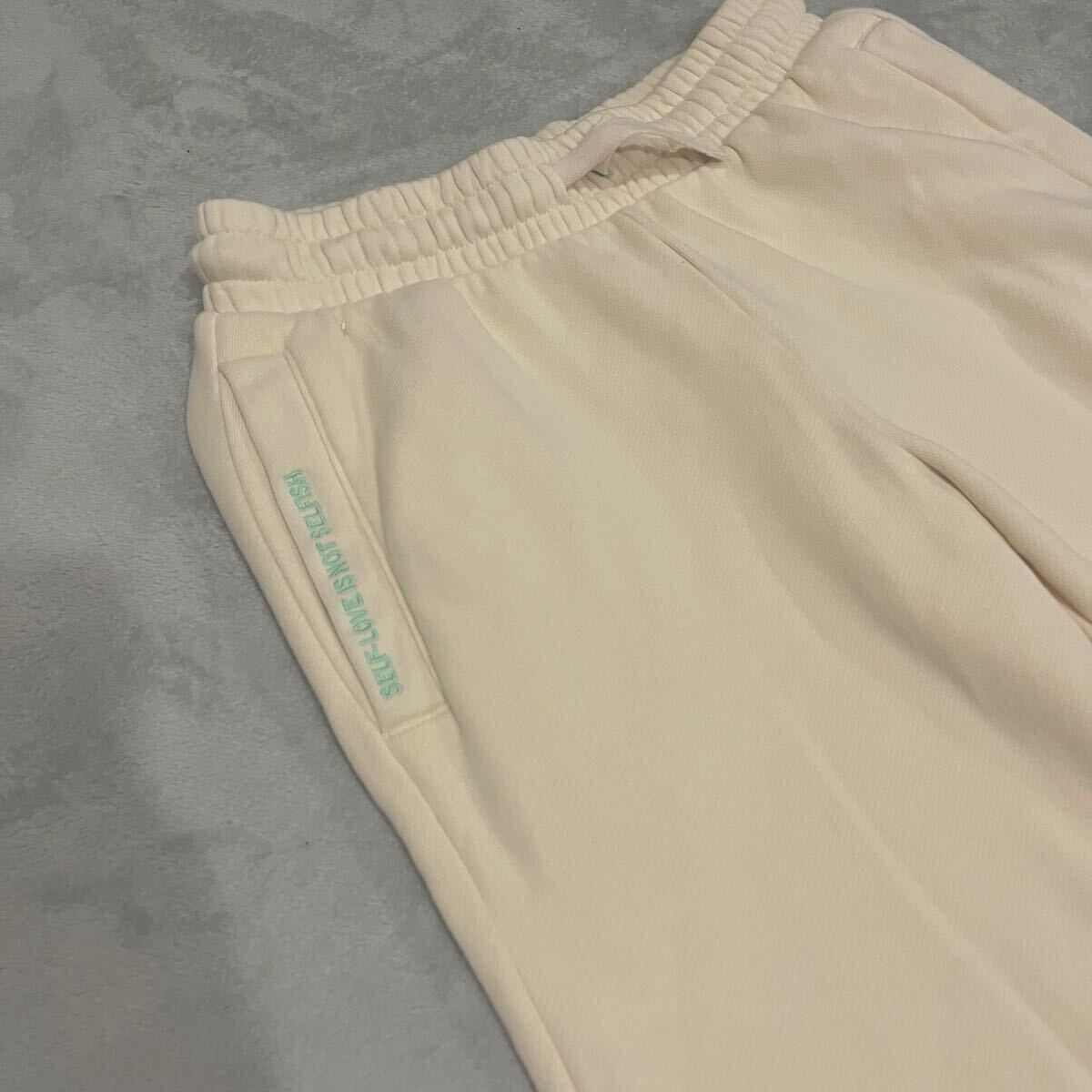stラインに柄がデザインされたかわいいスウェットパンツになります。色味も落ち着いていてスポーティーすぎない合わせやすいカラーになります。ロゴも刺繍デザイン!