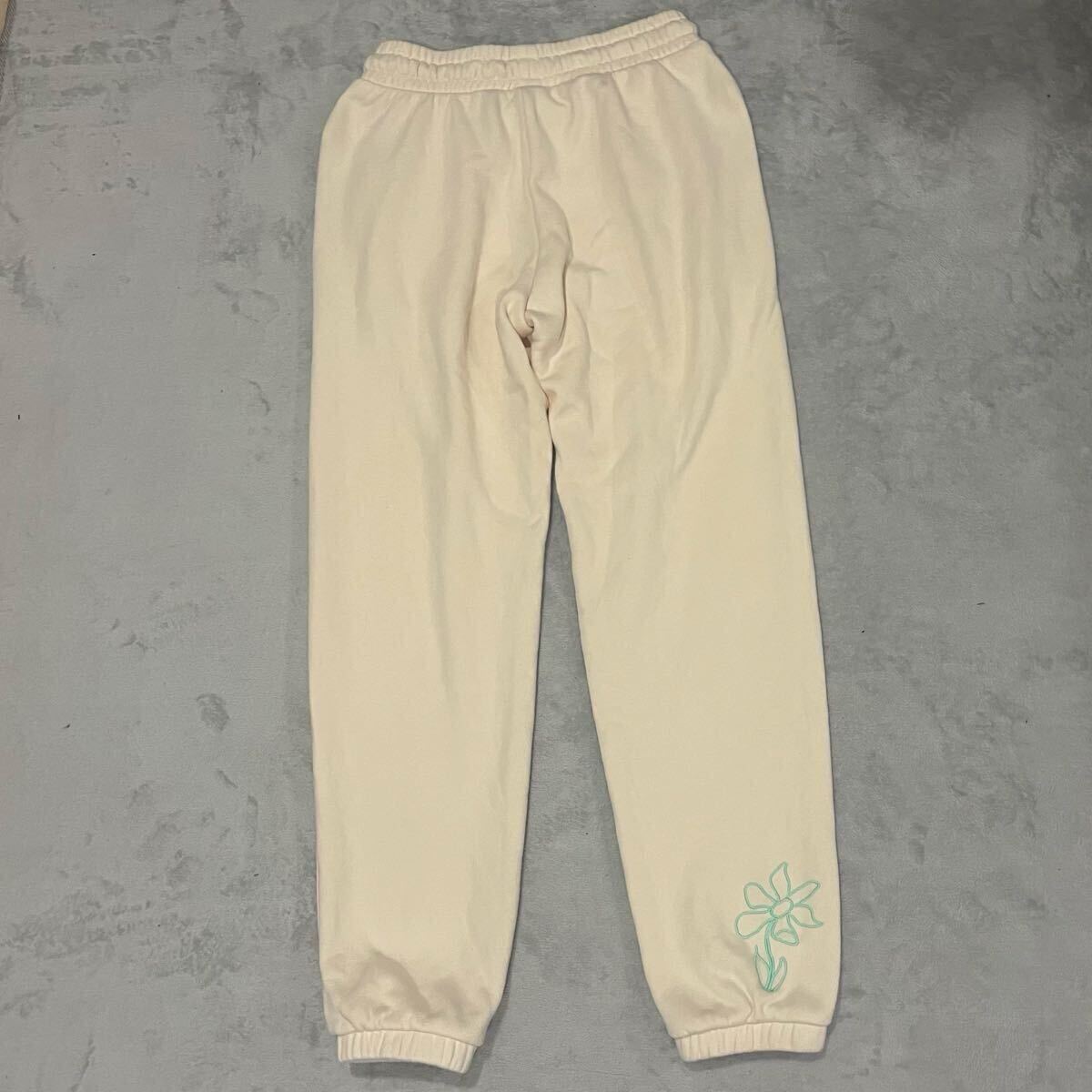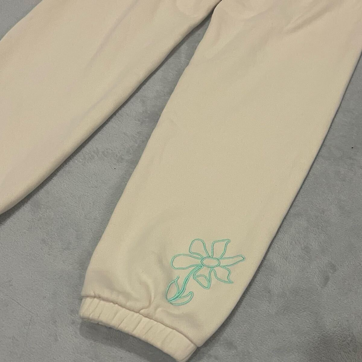 *定番のコットン100%の履き心地抜群のスウェットパンツになります。ロゴはステッチデザインにポケットには刺繍デザイン!足元にもかわいい花が刺繍されていて、前後でかわいいスウェットパンツになります。