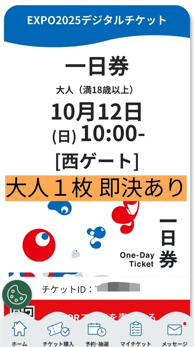 万博IDをお持ちの方、受取り方法や利用方法がわかる方のみご購入をお願いします。返品は不可となります。