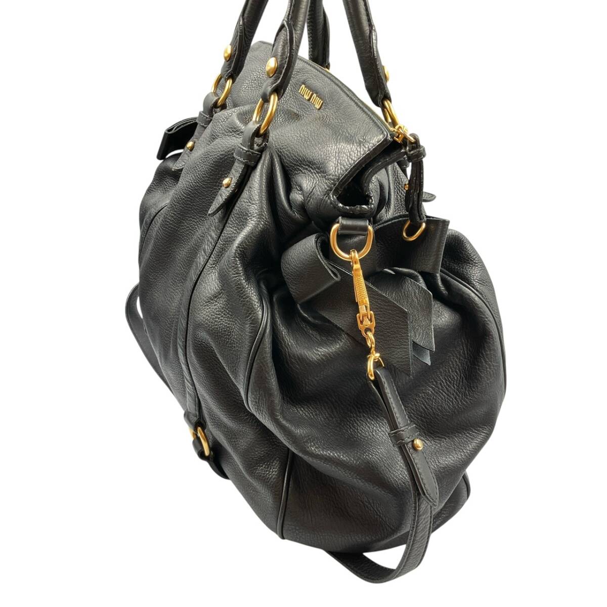ミュウミュウ レザーサイドリボン 2way ショルダーバッグ アーカイブ Y2K ゴールド金具 ブラック系 |