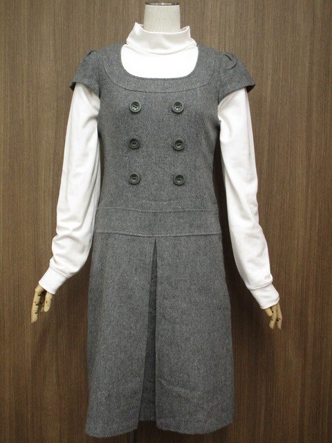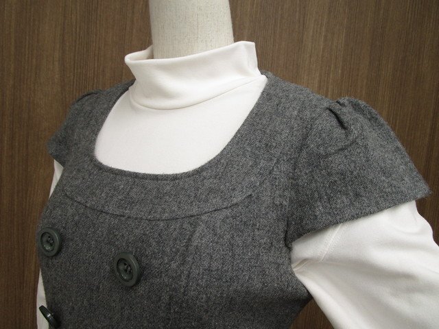 ひざ丈 フレンチスリーブ 半袖 Uネック ワンピース 9 グレー