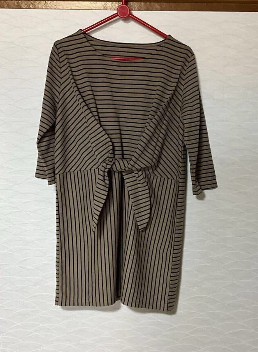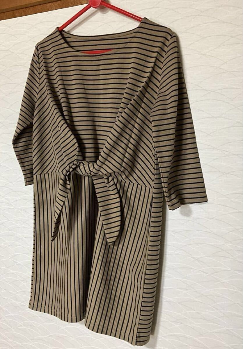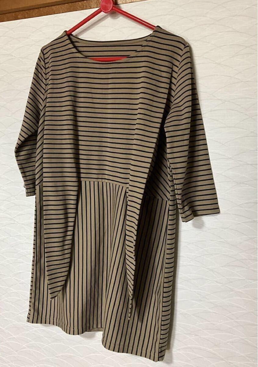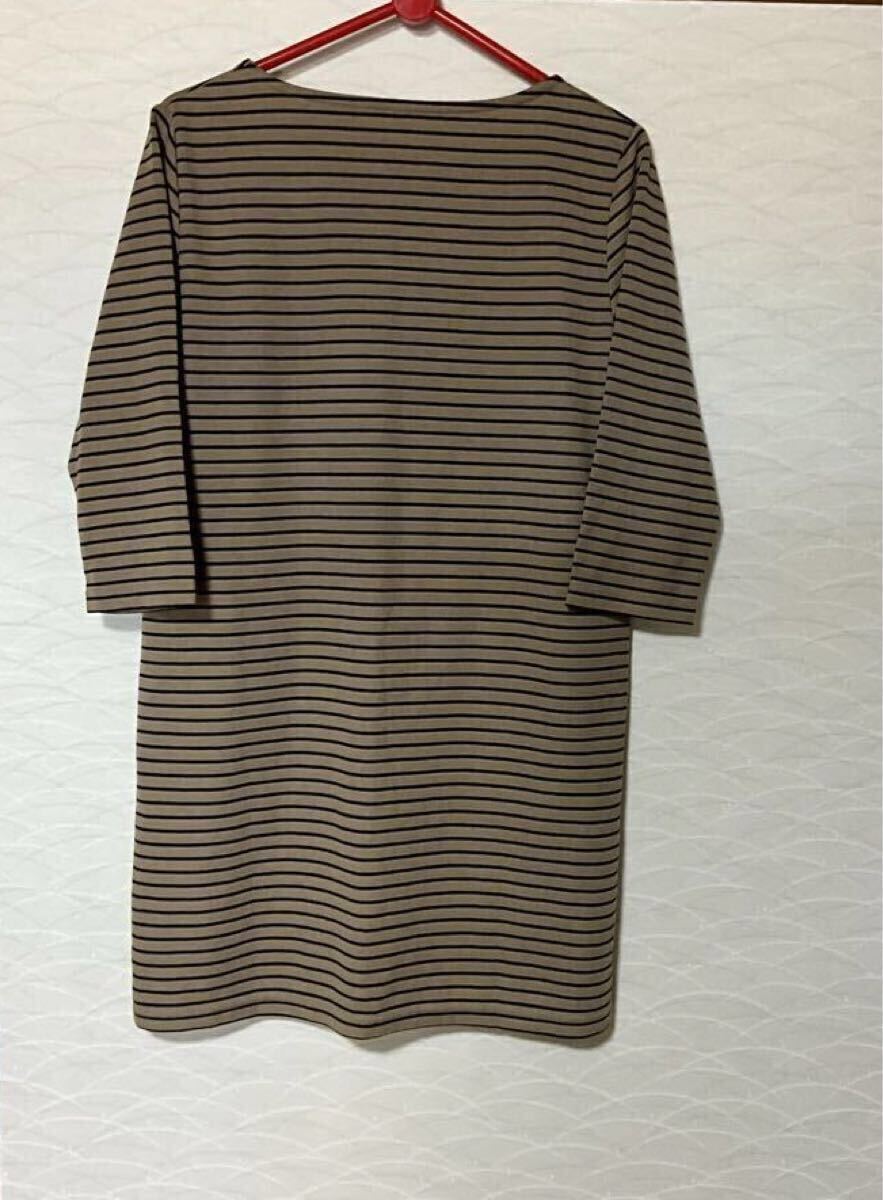 濃ベージュベースにブラックボーダーのチュニック