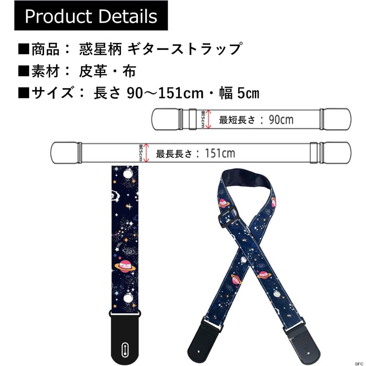 ギターストラップ ネイビー 惑星 ベースストラップ 調節可能 吊り下げ式 送料無料 楽器 アクセサリー かわいい オシャレ