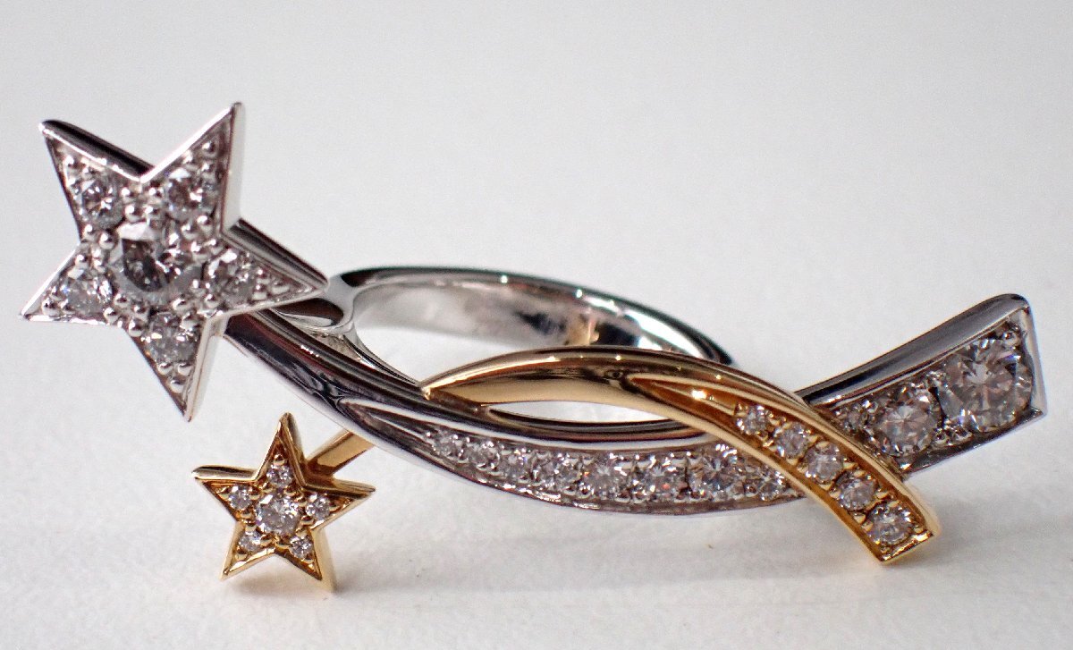 定価170万円ほど 極美品 シャネル J10866 コメット コンビ スター ダイヤ リング 星 ダイヤモンド K18PG K18WG ダイヤリング 47 7号 3626