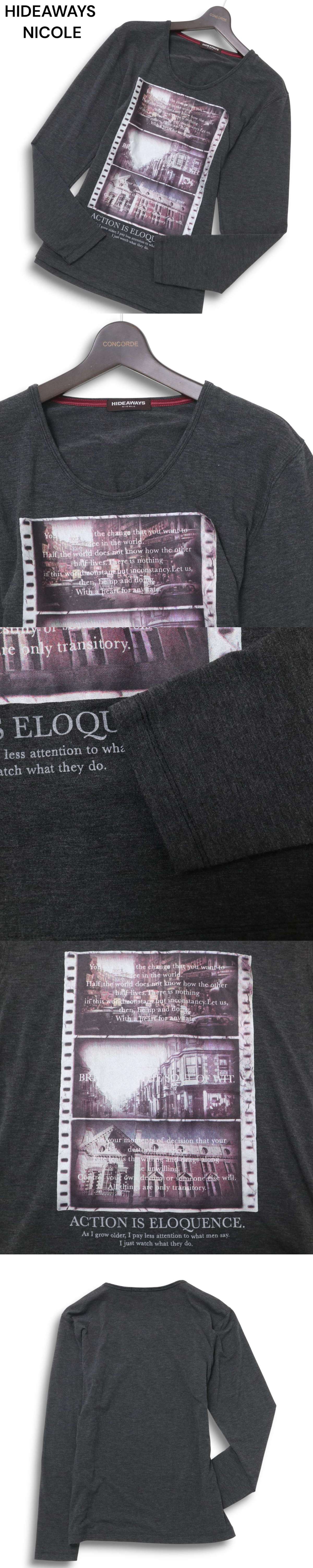 HIDEAWAYS NICOLE ハイダウェイ ニコル 通年 グラフィック プリント★ 長袖 カットソー ロンTシャツ Sz.50 メンズ グレー