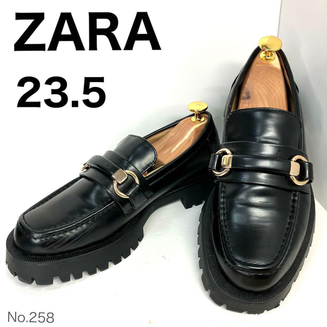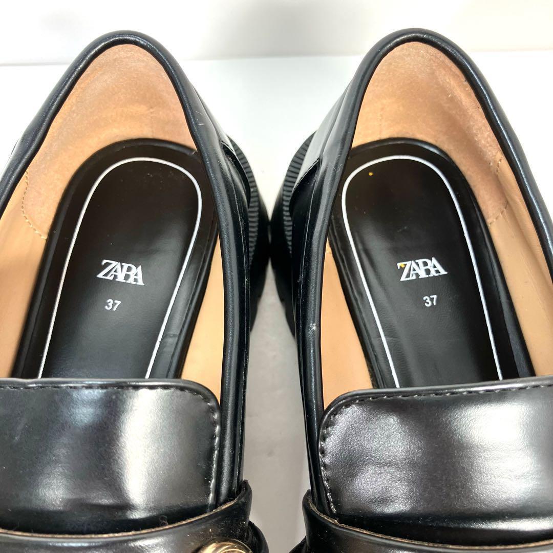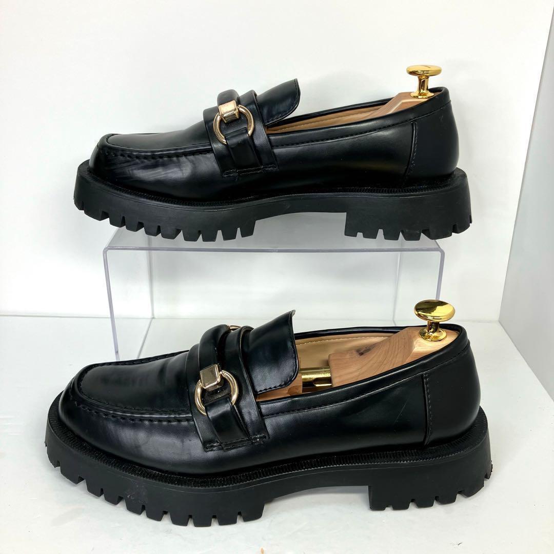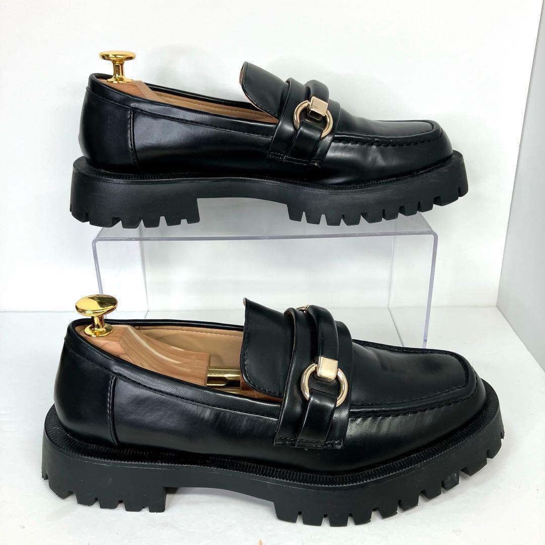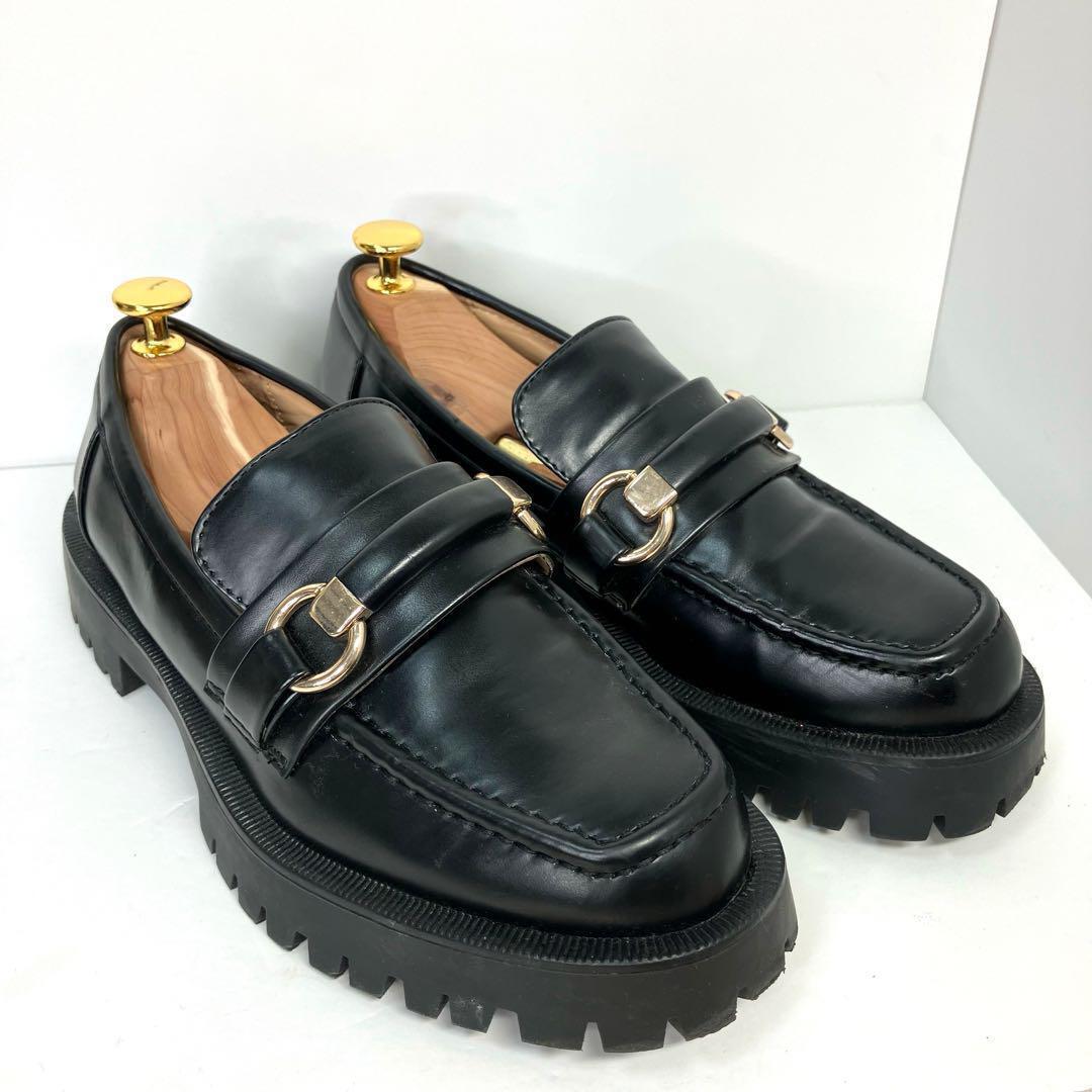 ザラ ビットローファー 太ヒール ブラック 厚底 ソール23.5cm