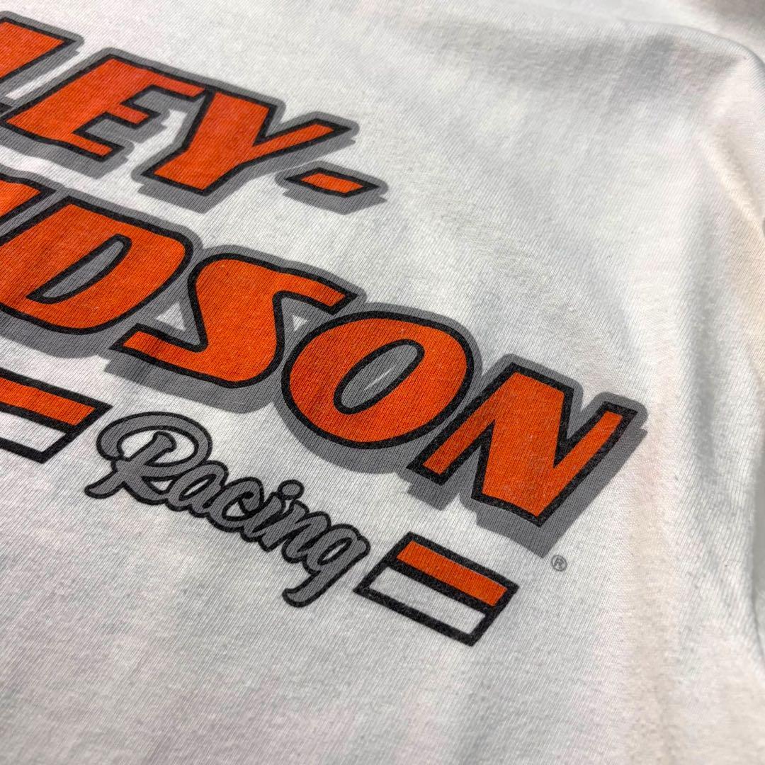 ★00s USA製 Harley-Davidson 両袖プリント Racing ロンT ホワイト Mサイズ★