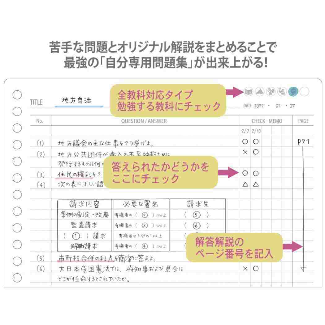 勉強の仕方が大きく変わる中学生女子に向けた勉強シリーズ みおりん Study Timeのステーショナリーシリーズ大人気の東大卒女子勉強法デザイナー みおりんカフェとのコラボ企画こちらは勉強にぴったりな[ルーズリーフ 苦手問題用]B5サイズの26穴タイプが30枚入っています苦手な問題とオリジナル解説をまとめることで「自分専用問題集」が作れるタイプです他にもいろいろな文具があるのでお気に入りを揃えてくださいサイズ:182x257mm(30枚入り)