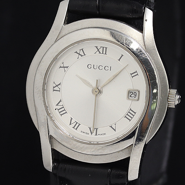 1円 稼働 グッチ 5500L QZ シルバー文字盤 レディース腕時計 0506000 9ERT SMZ