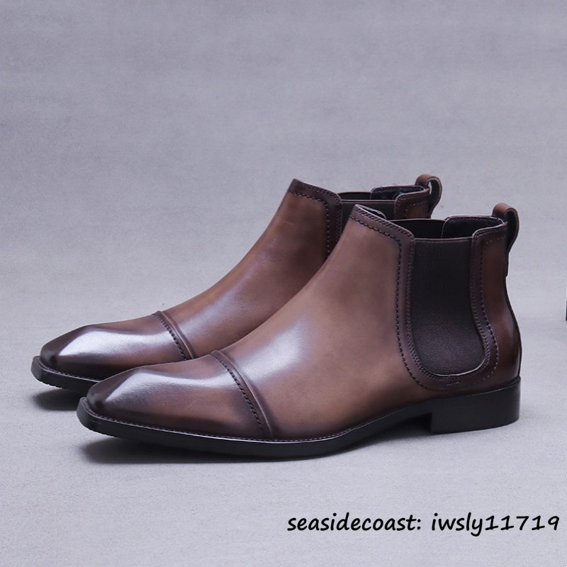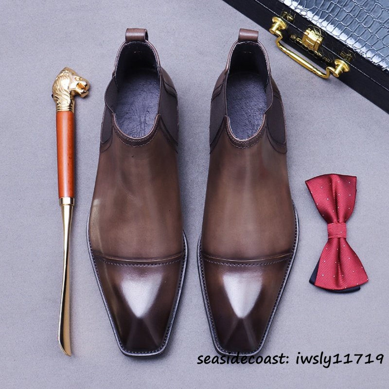 超希少*13万 ショートブーツ メンズ マーティンブーツ 本革 レザーブーツ 職人手作り ビジネスシューズ 高級牛革 ハイカット 珈琲色 25.0cm