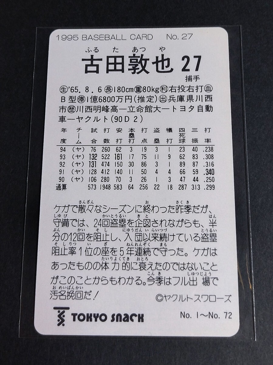 1995年カルビー 古田敦也(ヤクルト)No,27。