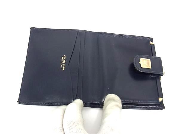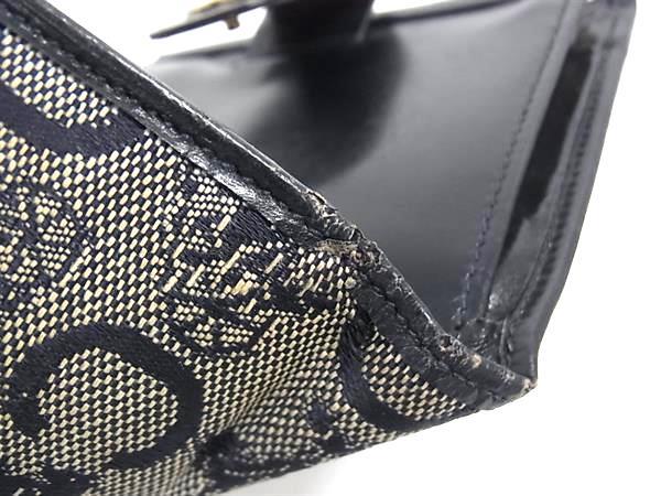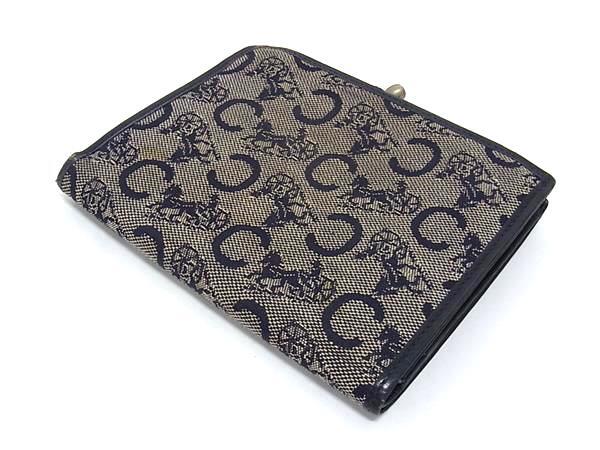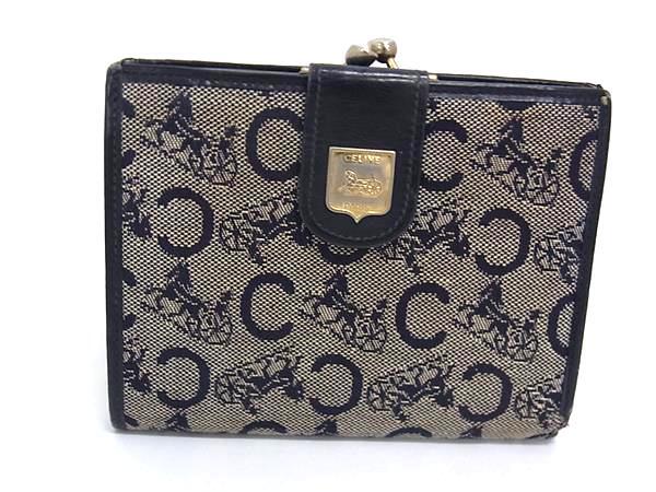 CELINE セリーヌ ヴィンテージ Cサルキー キャンバス×レザー がま口 二つ折り 財布 ウォレット 小銭入れ 札入れ ブラック系 DK2168