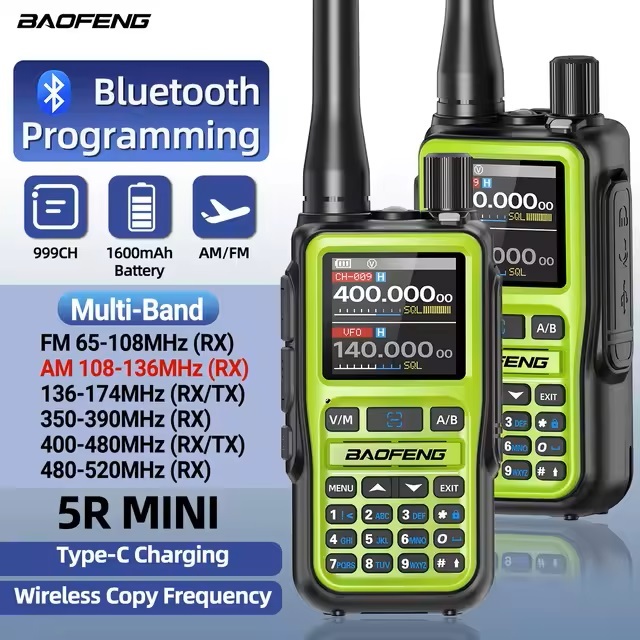 [広帯域ロングアンテナ付] Baofeng UV-5R Mini AM波 エアバンド 業務無線受信 144/430 トランシーバー 日本語簡訳付 無線機
