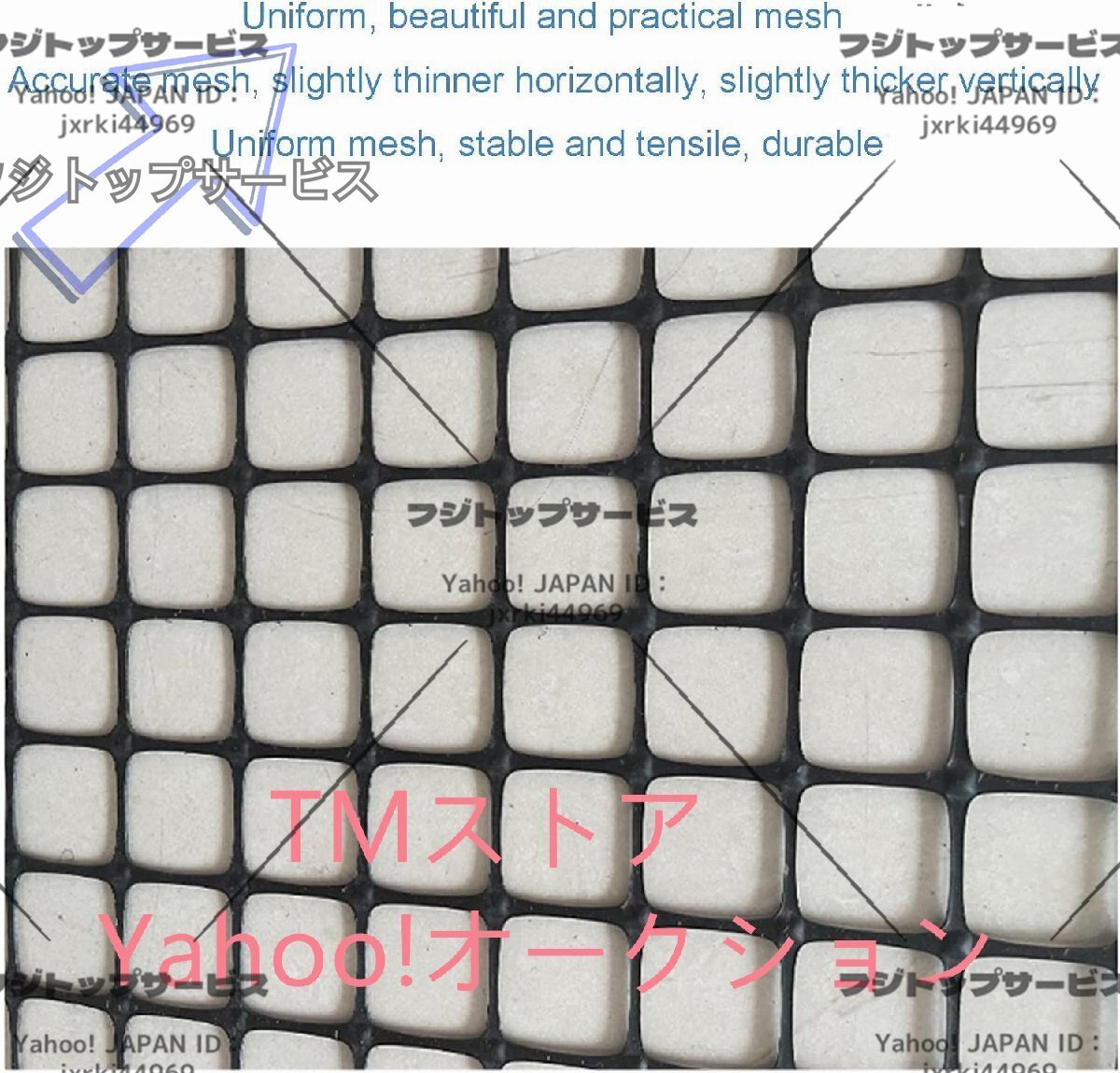 数あるオークションの中からご覧頂き、本当にありがとうございます♪当方、お客様が安心して取引が出来るよう真心込めて【商品詳細】★状態:新品未使用◆素材:プラスチック◆サイズ:1x50m、厚み:1.0mm、メッシュサイズ:3cm◆厚さ1.0mm。