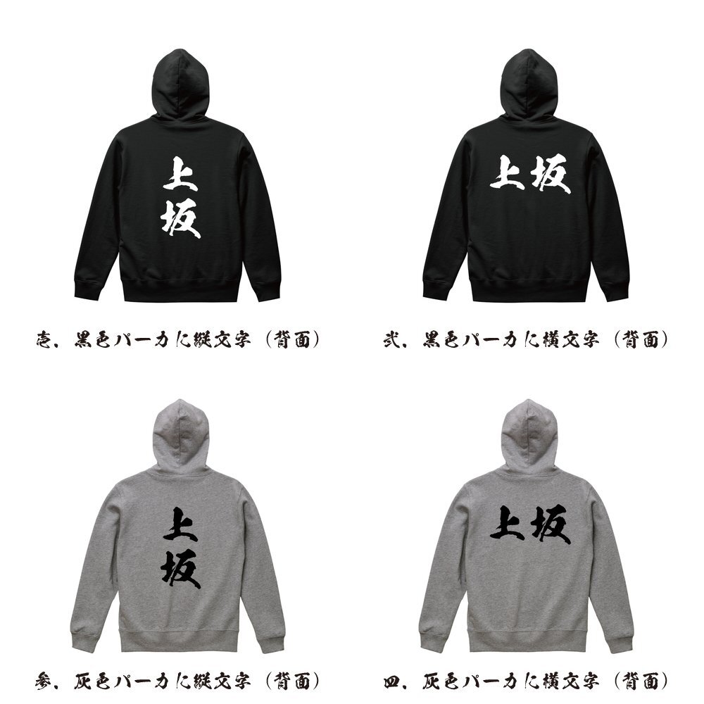 上坂 オリジナル パーカ 書道家が書く プリント フルジップ パーカー S M L XL XXL 110 130 150 【 名字 】