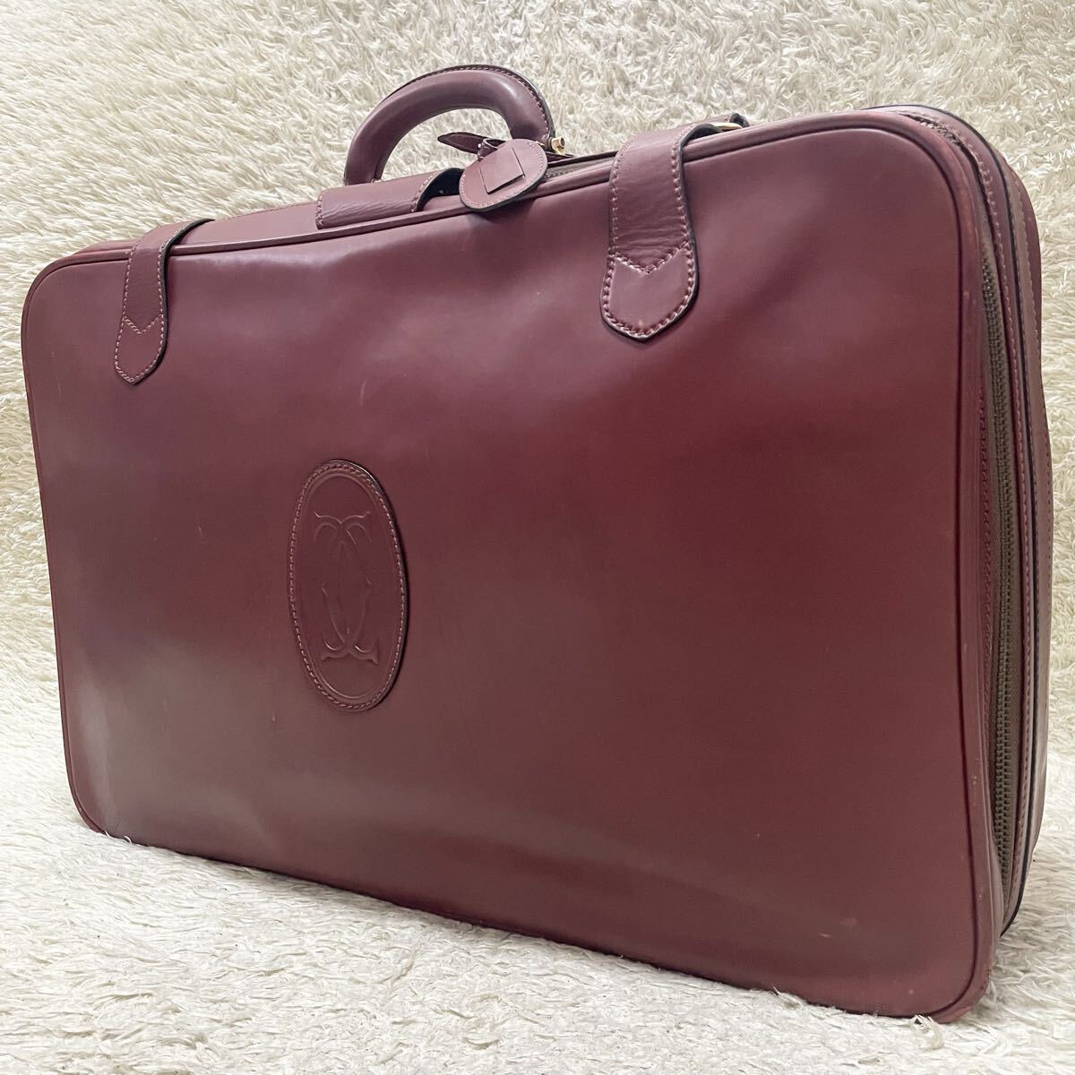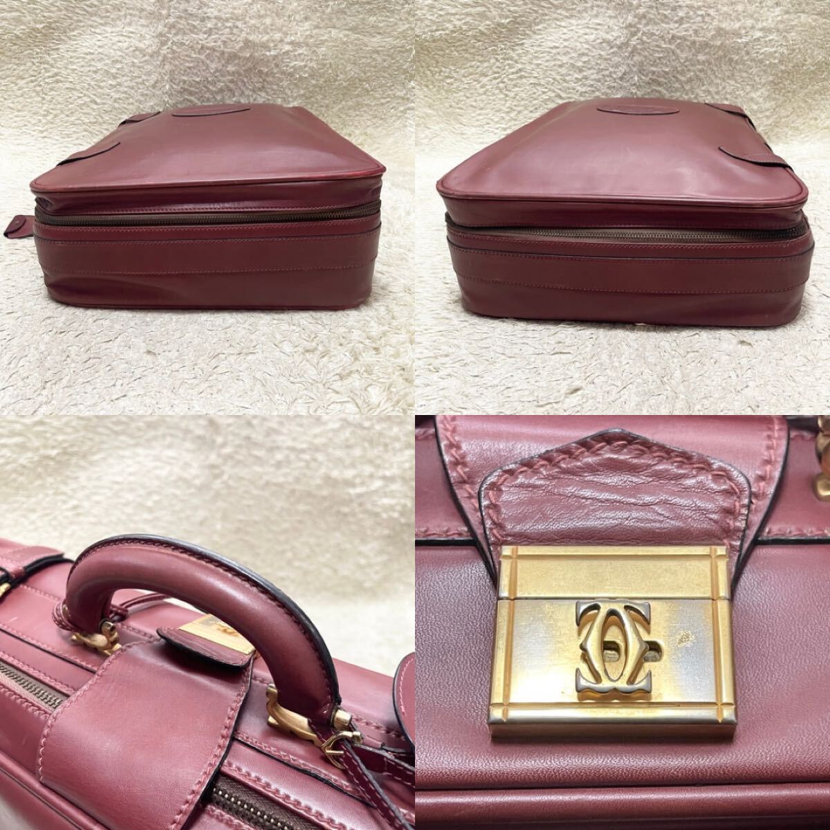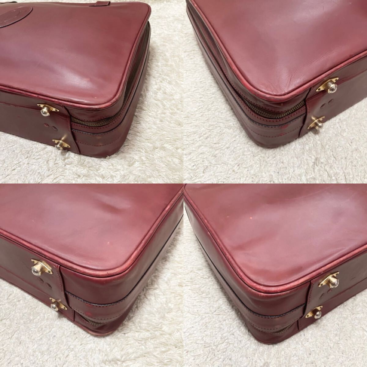 経年によるレザースレ、金具色落ち等の使用感がございますが、