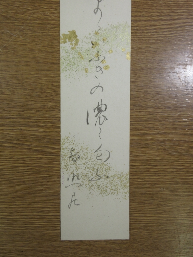 | 紙本サイズ | 縦:約36.3cm×横幅:約6.2㎝ (普通の短冊サイズです。) |