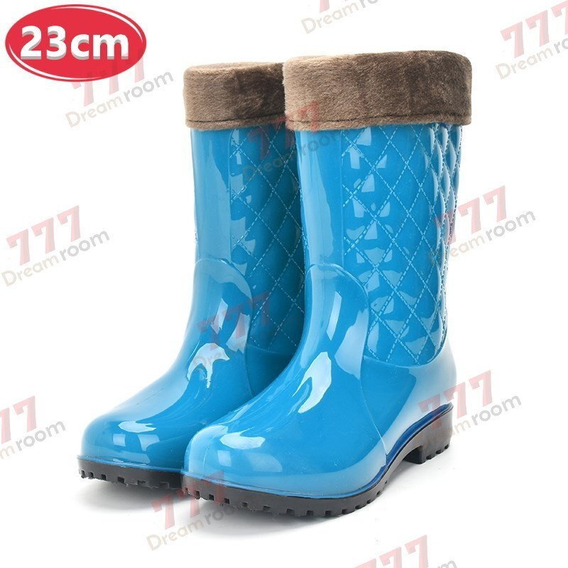 1スタ☆お洒落 キルティング レインブーツ ボアインナー付 【ブルー 23cm】 長靴 レディース 女の子 梅雨 K-312