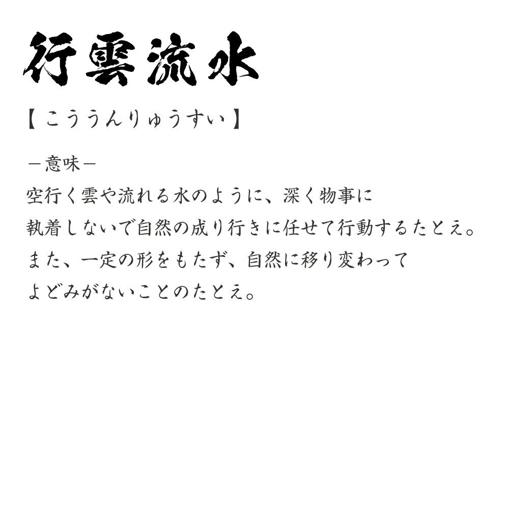 行雲流水 (こううんりゅうすい) 書道家が書く プリント Tシャツ S M L XL XXL 120 130 140 150 G-S G-M G-L 【 四字熟語 】