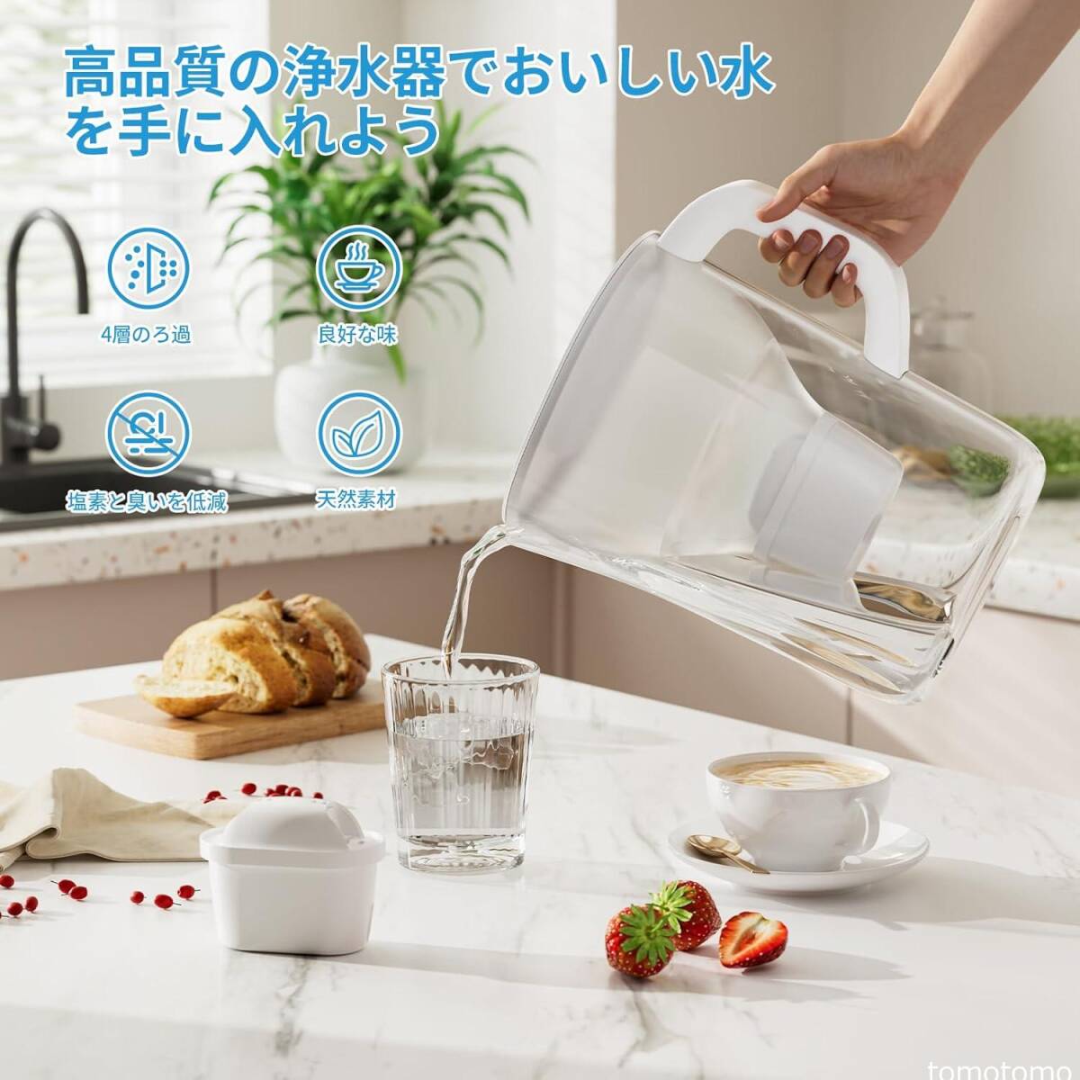 高品質の浄水器: 必須ミネラルを保持しながら、様々な不純物を効果的に除去します。いつでもどこでも新鮮な水を楽しむことができます!フィルターでろ過された水は、飲料水から料理まで、さまざまな用途に安全かつ確実に使用できます!健康な生活はおいしい水から