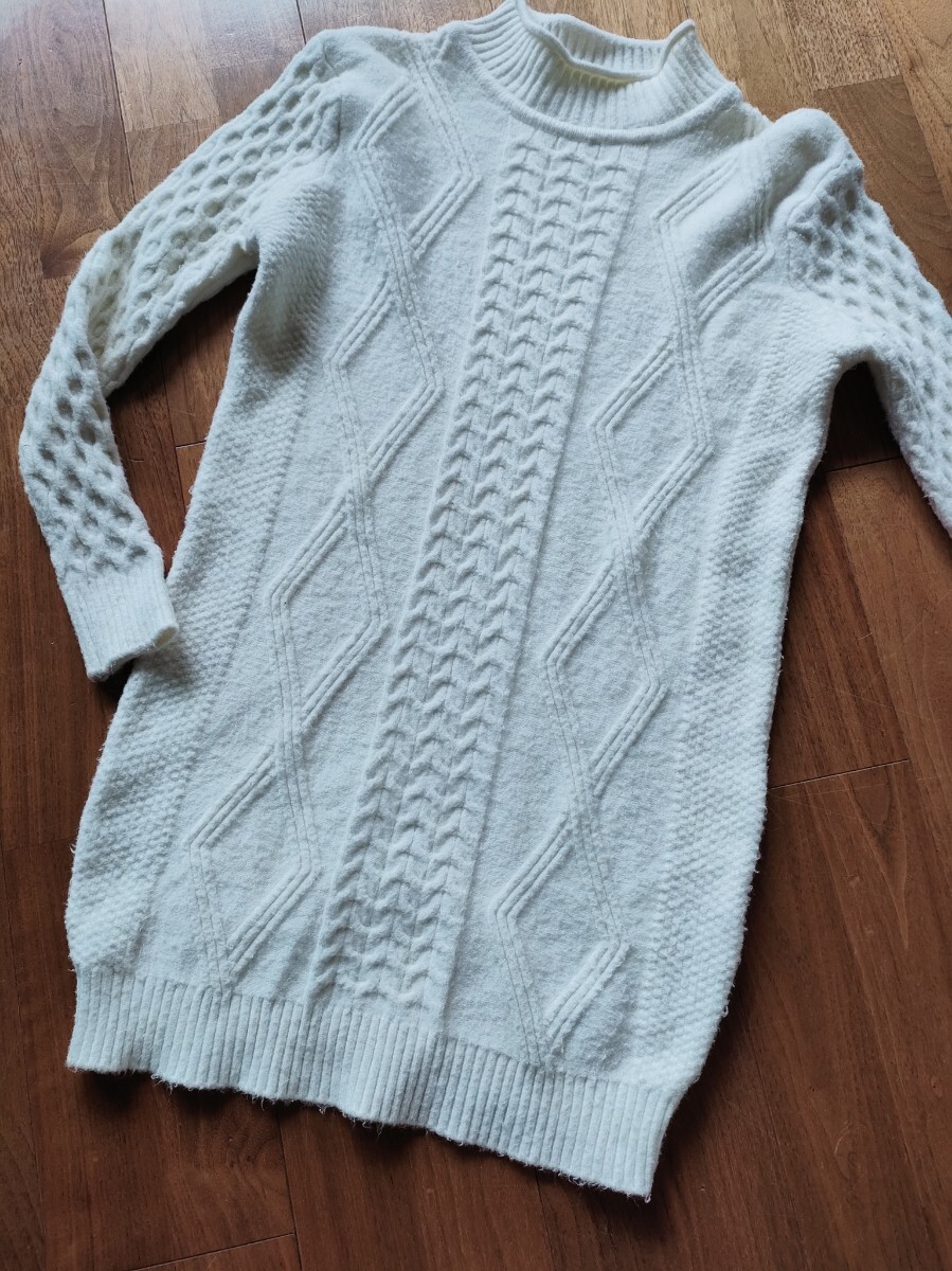 【デザイン】女性用 厚手ニット素材 長袖 チュニックワンピース