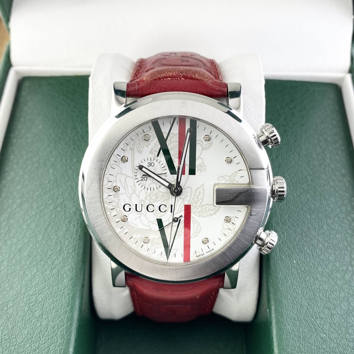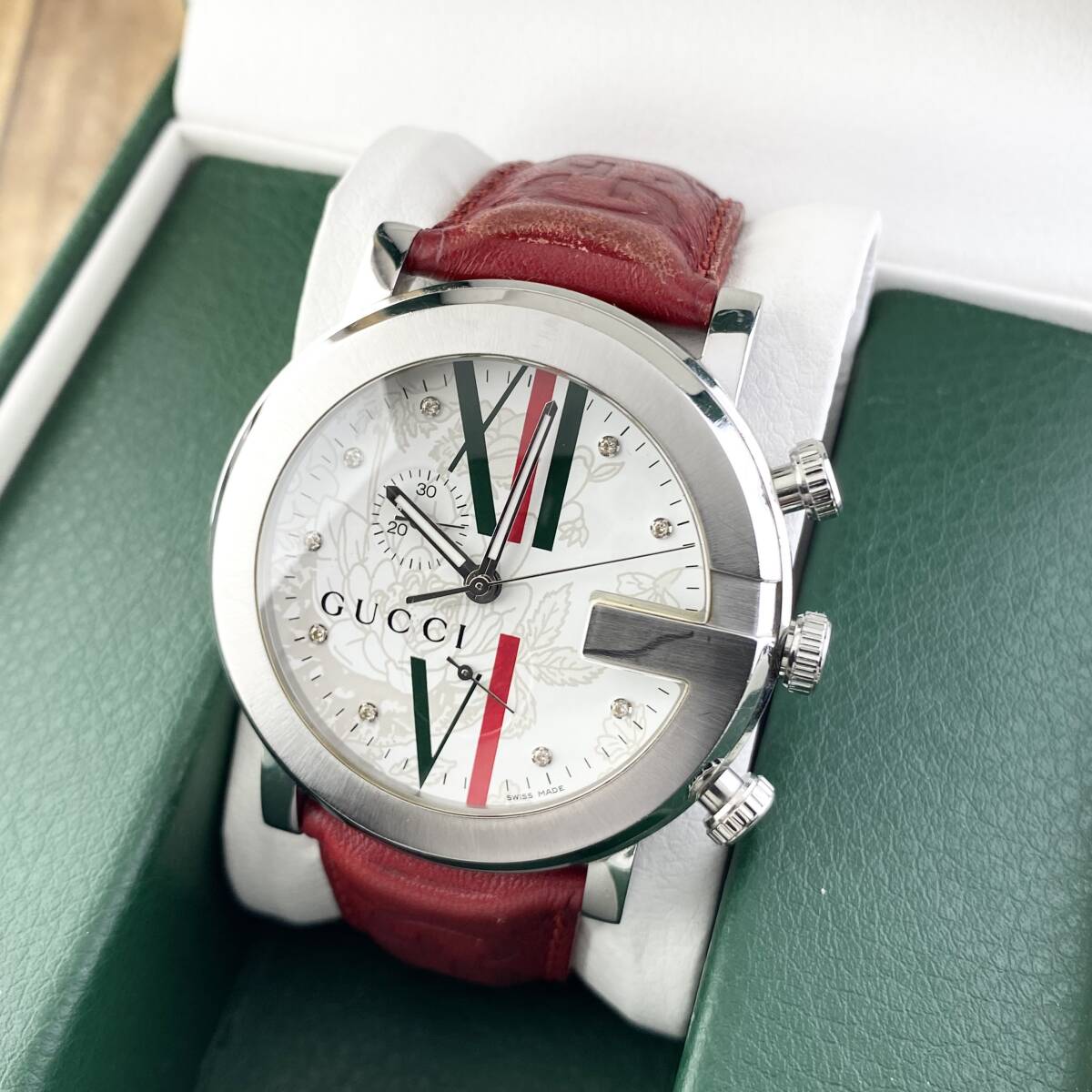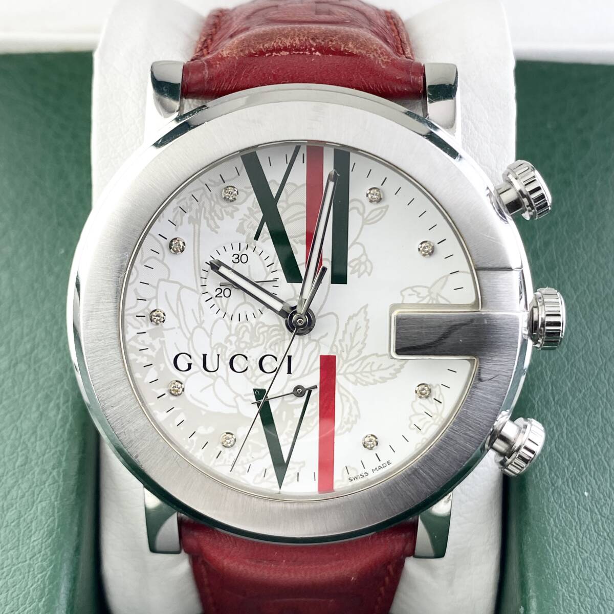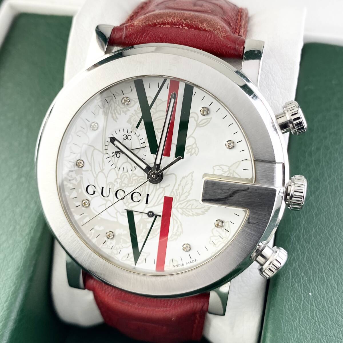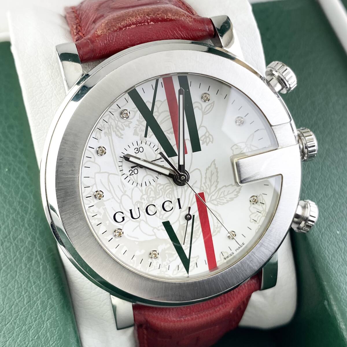 【1円箱付】GUCCI グッチ 腕時計 メンズ 101 クロノグラフ 9Pストーン G-TIMELESS Gタイムレス ホワイト文字盤 GG シェリー 可動品 | |||