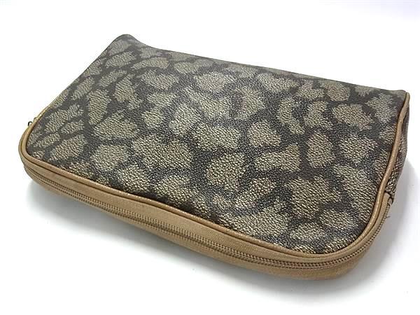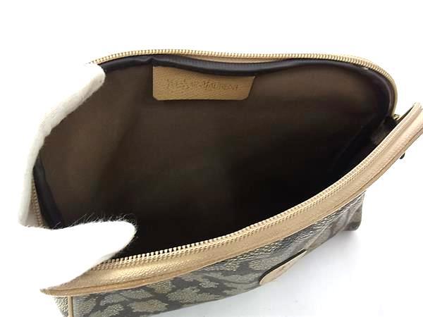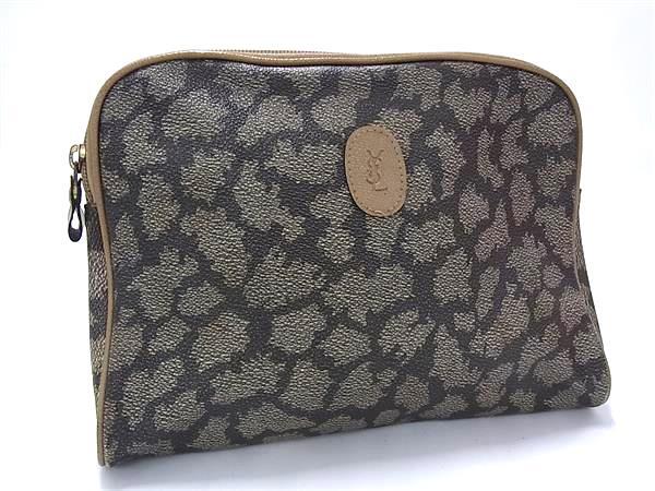 YVESSAINTLAURENT イヴサンローラン PVC×レザー 総柄 クラッチバッグ セカンドバッグ メンズ レディース ブラウン系 DH4959