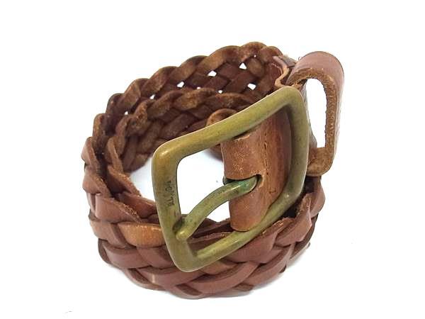 RALPH LAUREN ラルフローレン ヴィンテージ 真鍮 レザー 編み込み ベルト 表記サイズ 26 レディース ブラウン系 DI9963