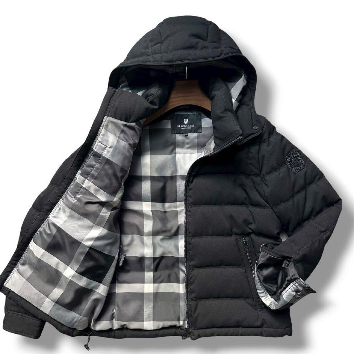 ダウン ジャケット 上着 羽織 フード フェザー チェック 袖ロゴ メンズ ホワイトグースダウン メガチェック