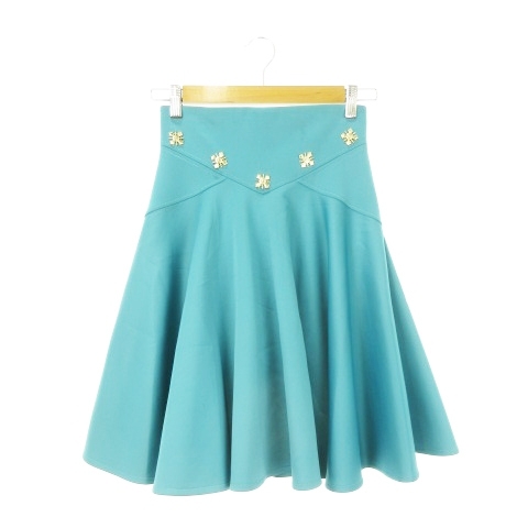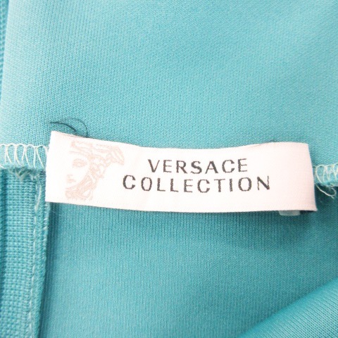 ヴェルサーチ COLLECTION スカート サーキュラー フレア ひざ丈 ストレッチ エンブレムパーツ 40 M 水色 ブルー /AH17 レディース
