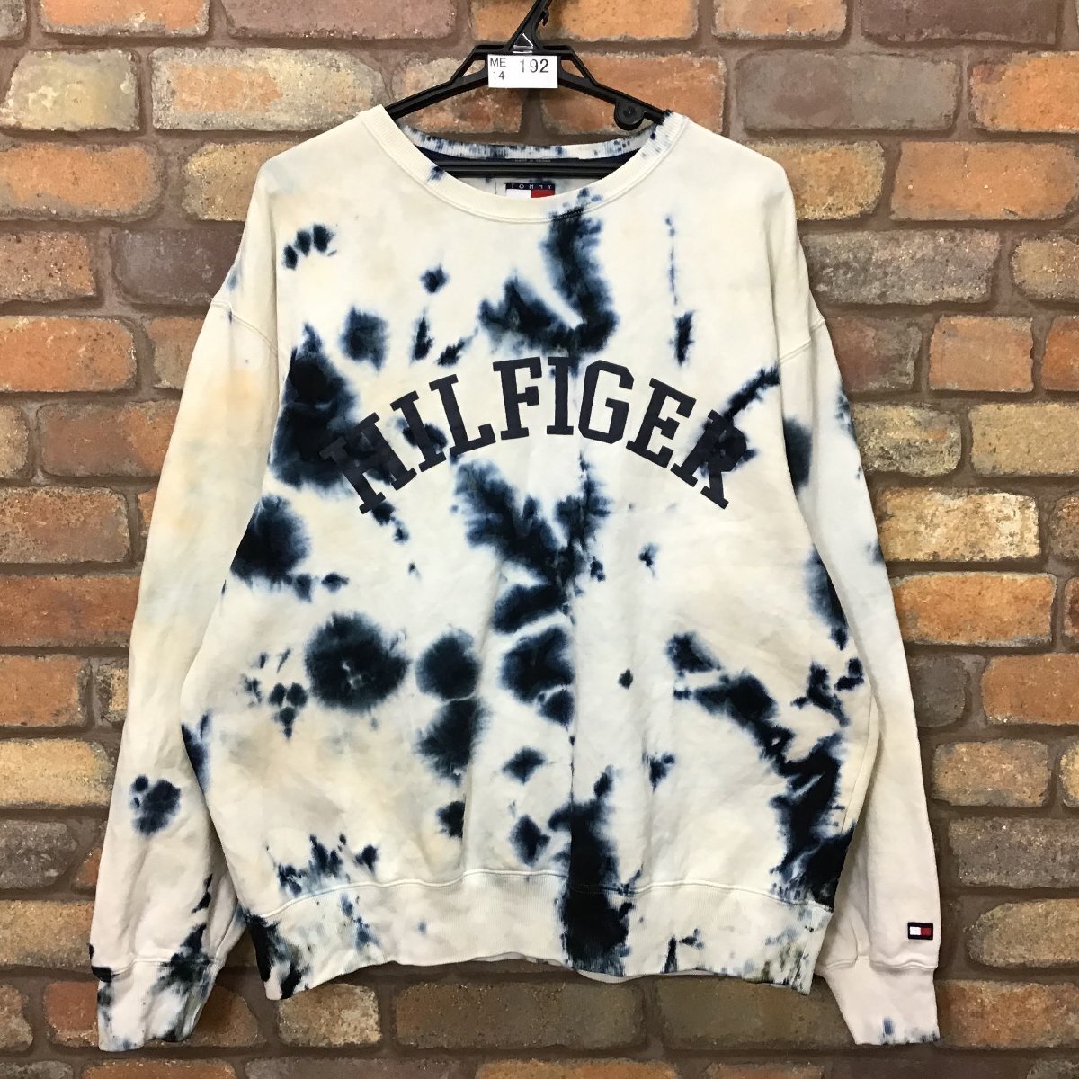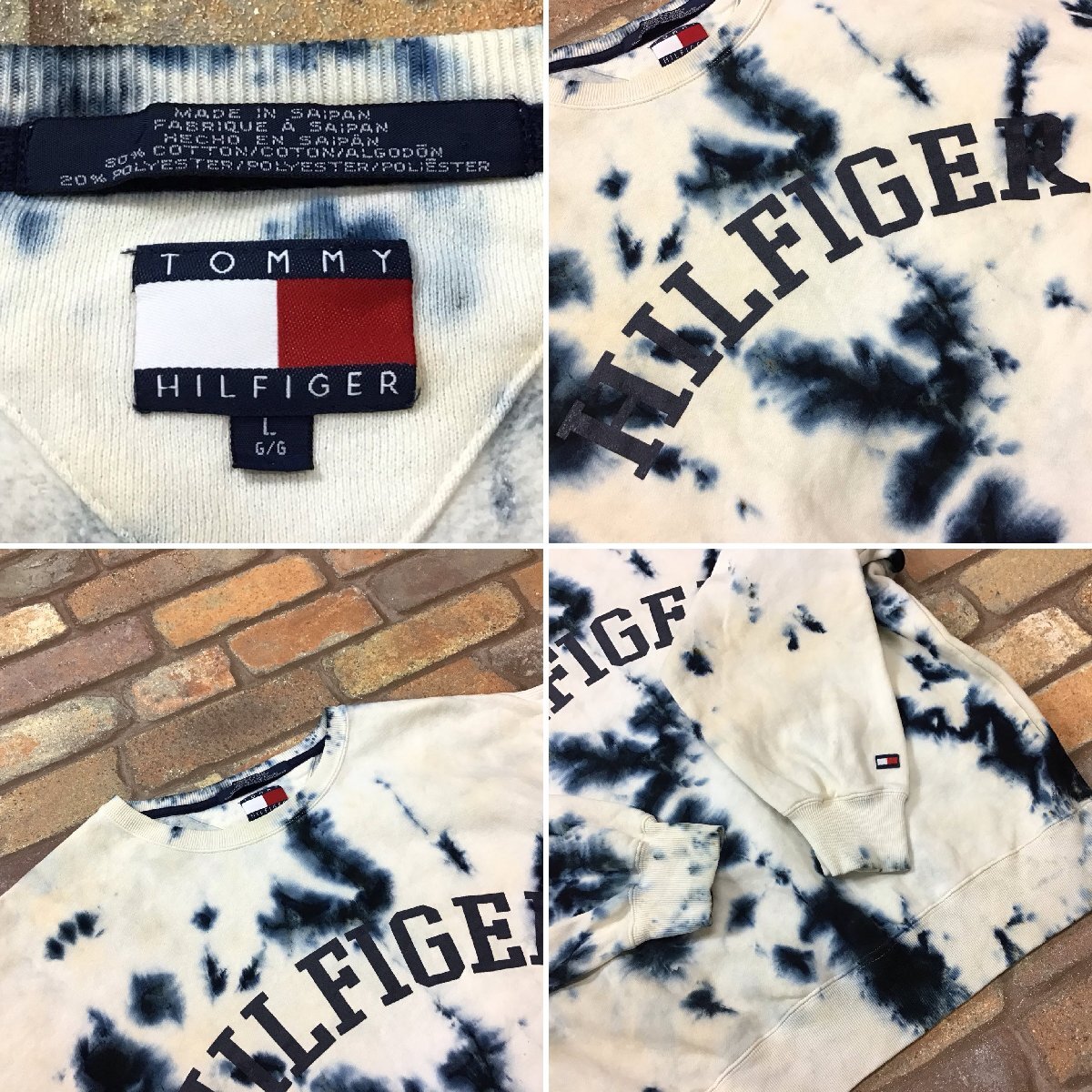 合計落札金額¥8,000円以上で、、、 送料無料!! ※こちらからの[合計支払い金額通知]をご確認の上、お支払い下さい♪ -------------------------------- 【TOMMY HILFIGER トミーヒルフィガー】 白 炭黒 90’s VINTAGE 旧タグ BIGプリント 袖刺繍ロゴ タイダイ染め ムラ染め スウェットシャツ トレーナー ● USA輸入・正規品 ● 海外サイズ規格 -------------------------------- ◆ 商品説明 ◆ 裏起毛にごわつきが見られますが、着用時に見えるダメージはありません◎ カレッジ風のBIGロゴプリント。 左袖に刺繍ロゴ付き。 -------------------------------- ◆ サイズ表記 ◆ L ※下記実寸のご確認をお願いいたします。 ◆ 実寸◆ 肩幅:61cm 身幅:65cm(両脇下間を計測) 着丈:65cm(背面襟元~裾を計測) 袖丈:61cm ※素人採寸の為、多少の誤差はお許しください。 -------------------------------- ◆ 素材表記 ◆ コットン 80% ポリエステル 20% ------------------------ | |||||