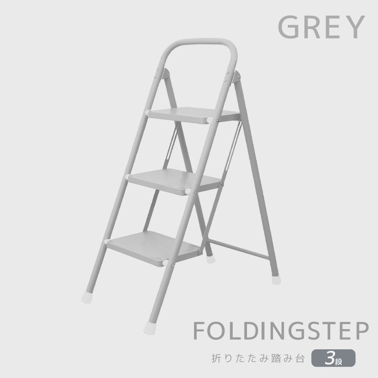 ステップ台 3段脚立 (折りたたみステップ 滑り止め加工) 耐荷重(約): 150kg 段数: 3段タイプ カラー: グレー 暮らしに馴染むやさしいカラーの折りたたみステップです。 一家に一台あると便利! 照明器具の交換や、高い位置になる棚から物を取り出すときに便利!! 耐荷重(約)150kg&ワイドステップ!安定感抜群で安心♪ また、滑り止め加工・握りやすい持ち手・脚先グリップで最上段まで簡単に上れます! お部屋や玄関に置いても邪魔にならないスリムサイズ。 折りたためばコンパクトに!手軽に持ち運びできちゃいます☆ |