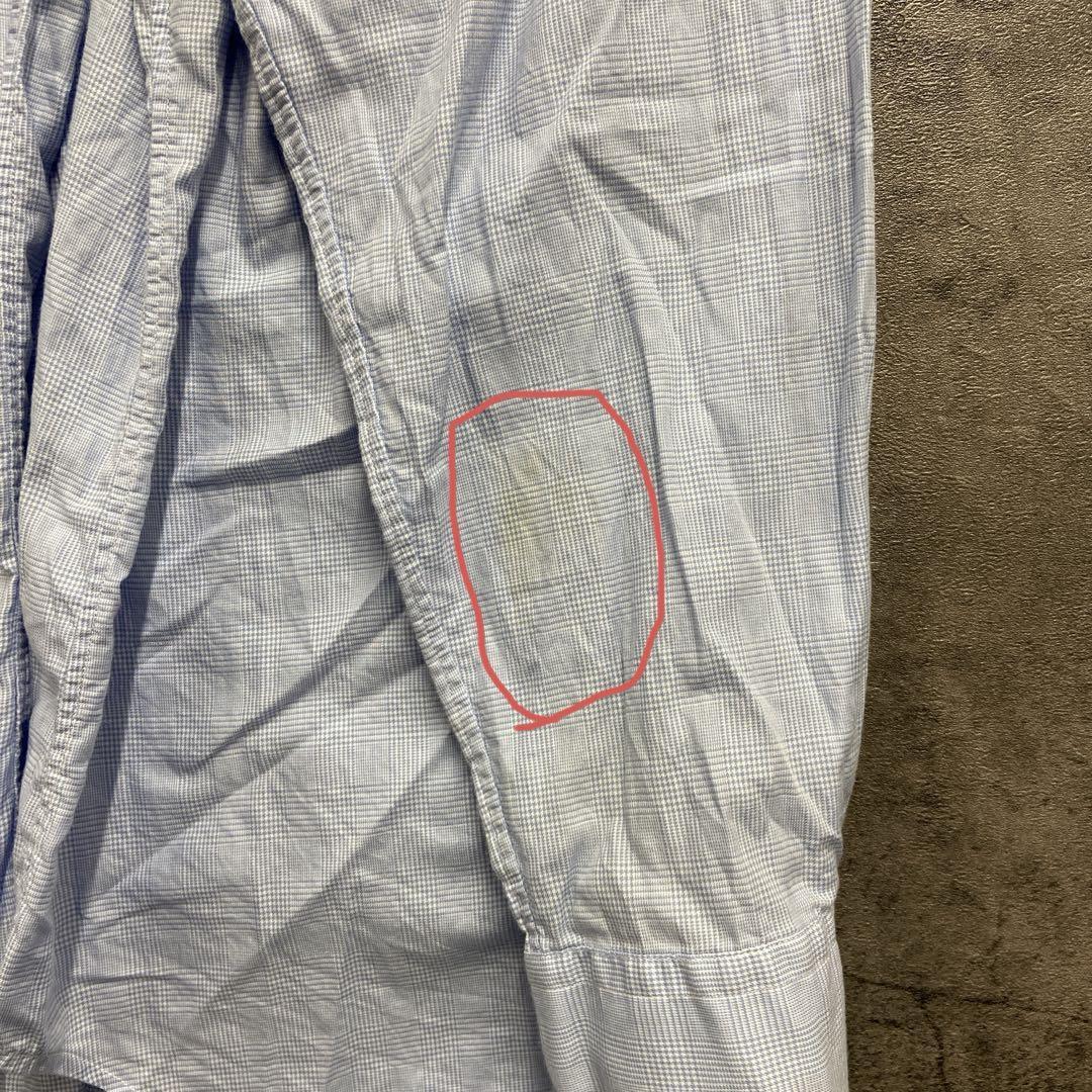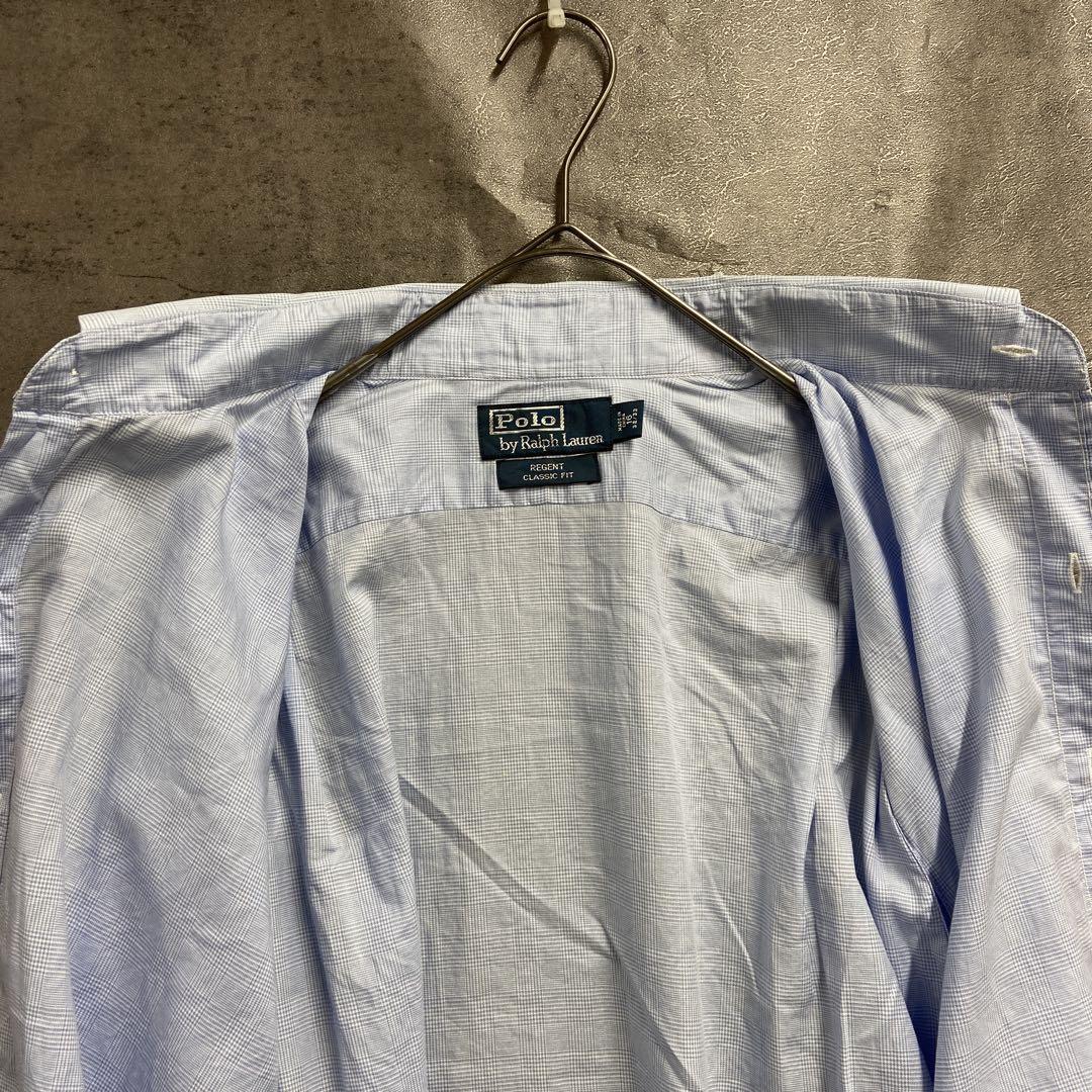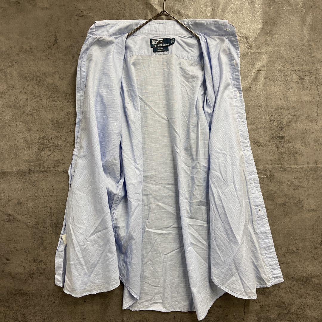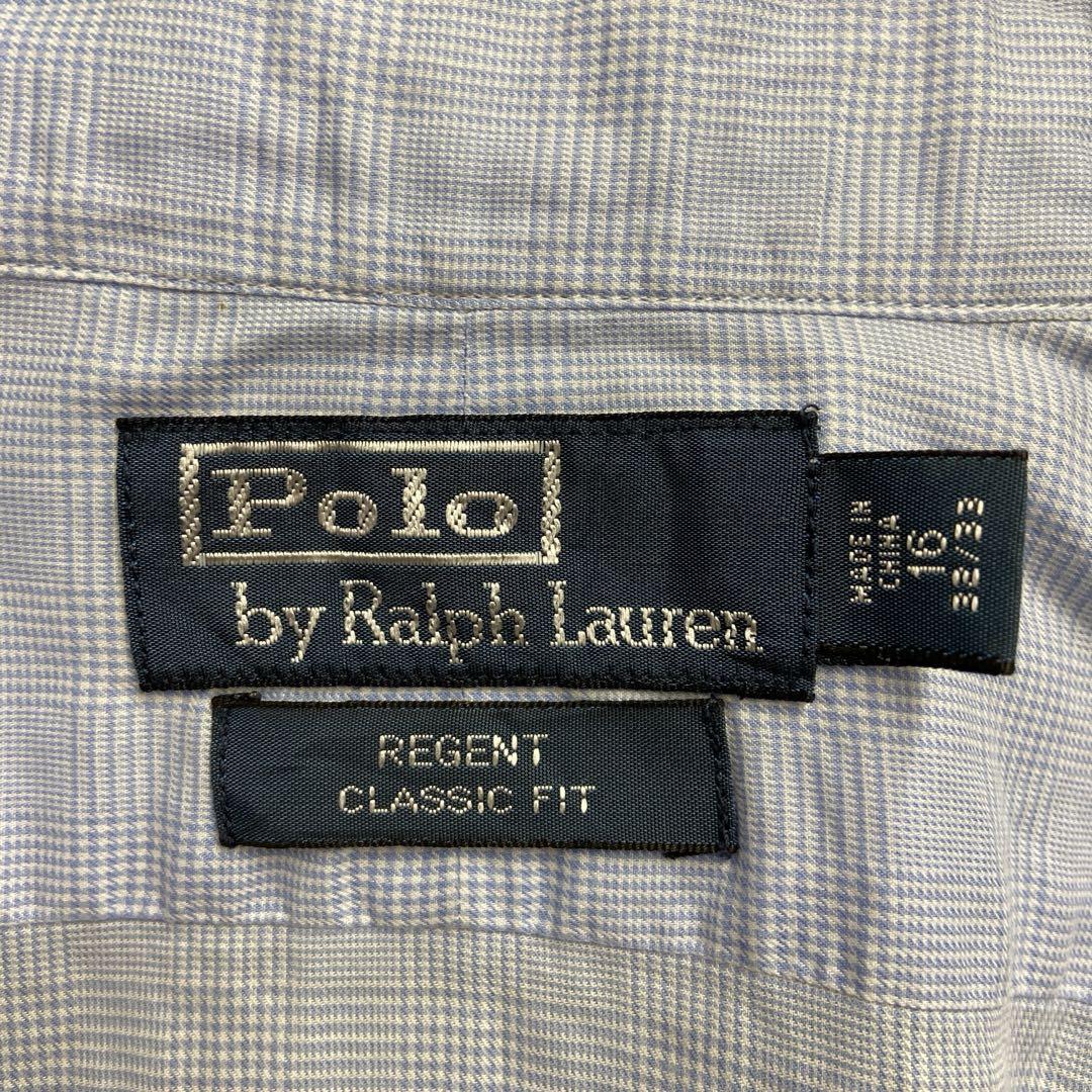 爽やかなサックスブルー系ギンガムチェックが特徴のポロラルフローレン長袖シャツです。コットン100%素材で着心地抜群。襟元や袖口、前身頃に汚れが見受けられますので必ず写真にてご確認ください。