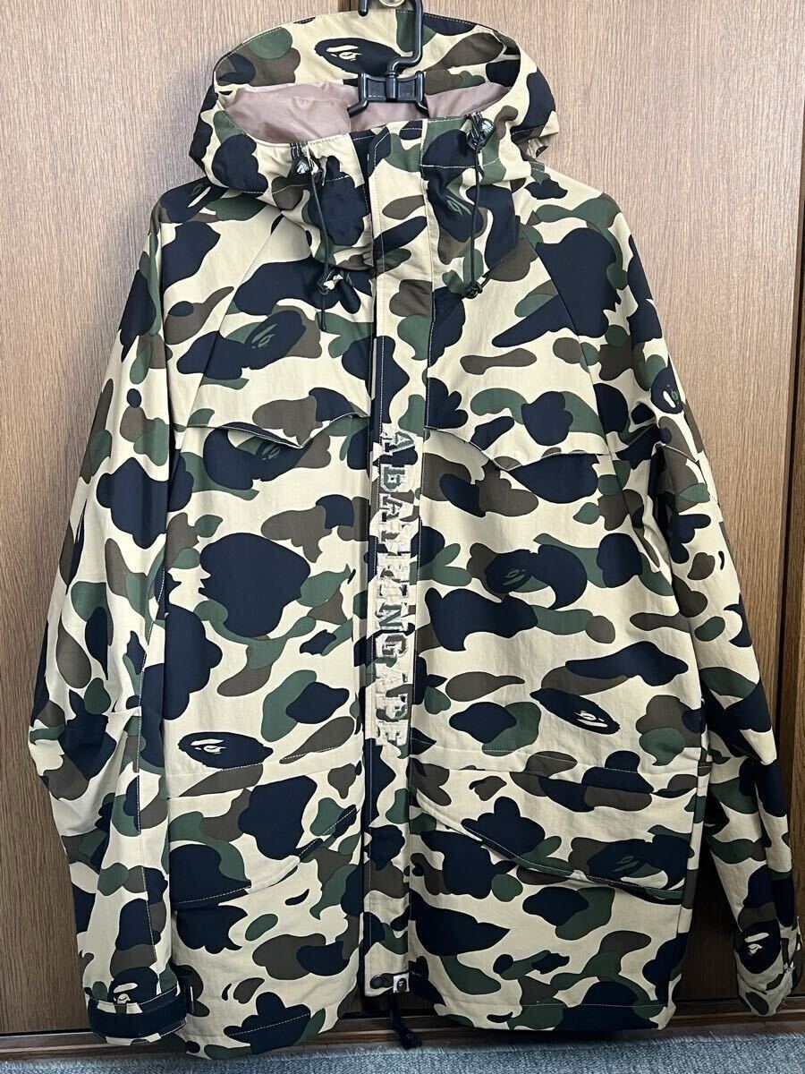 A BATHING APEの1996年発売、最初期1st CAMO(イエローカモ)のスノボジャケットです。 サイズはLです。