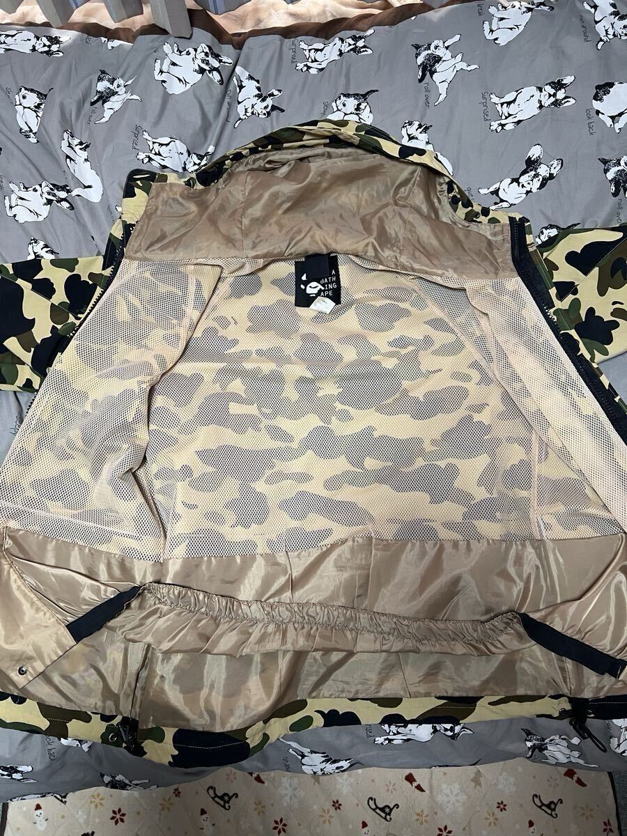 1996年製のA BATHING APE 1st CAMO(イエローカモ)スノボジャケット、Lサイズ、木村拓哉「オロナミンC」CM着用モデル。