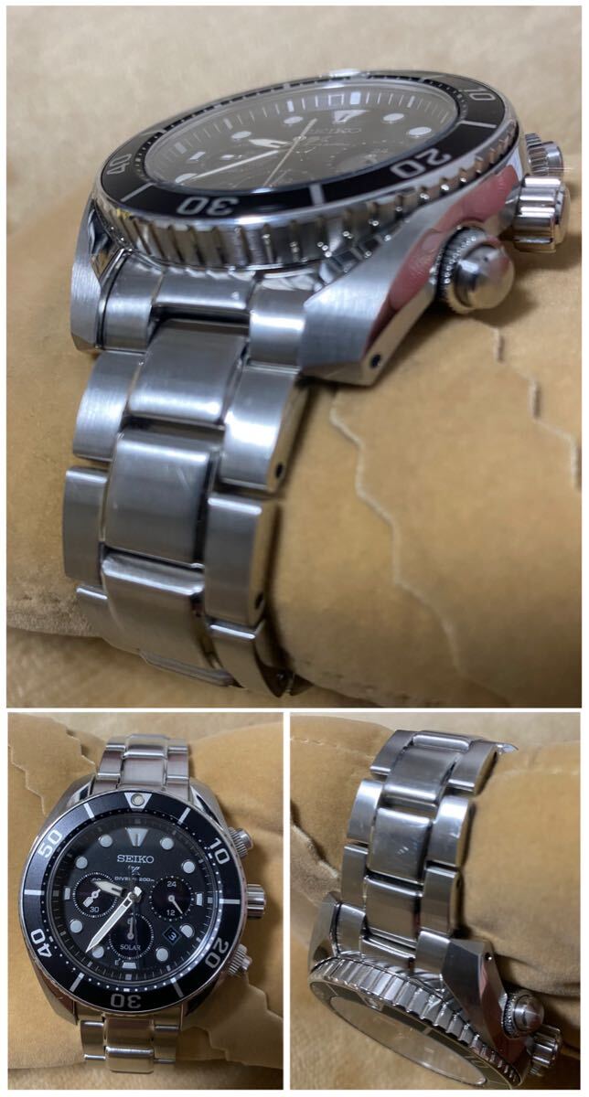 美品! SEIKO セイコー SBDL061 プロスペックス PROSPEX SUMO クロノグラフ ダイバー ブラック 黒文字盤 V192-0AD0 ソーラー メンズ 腕時計