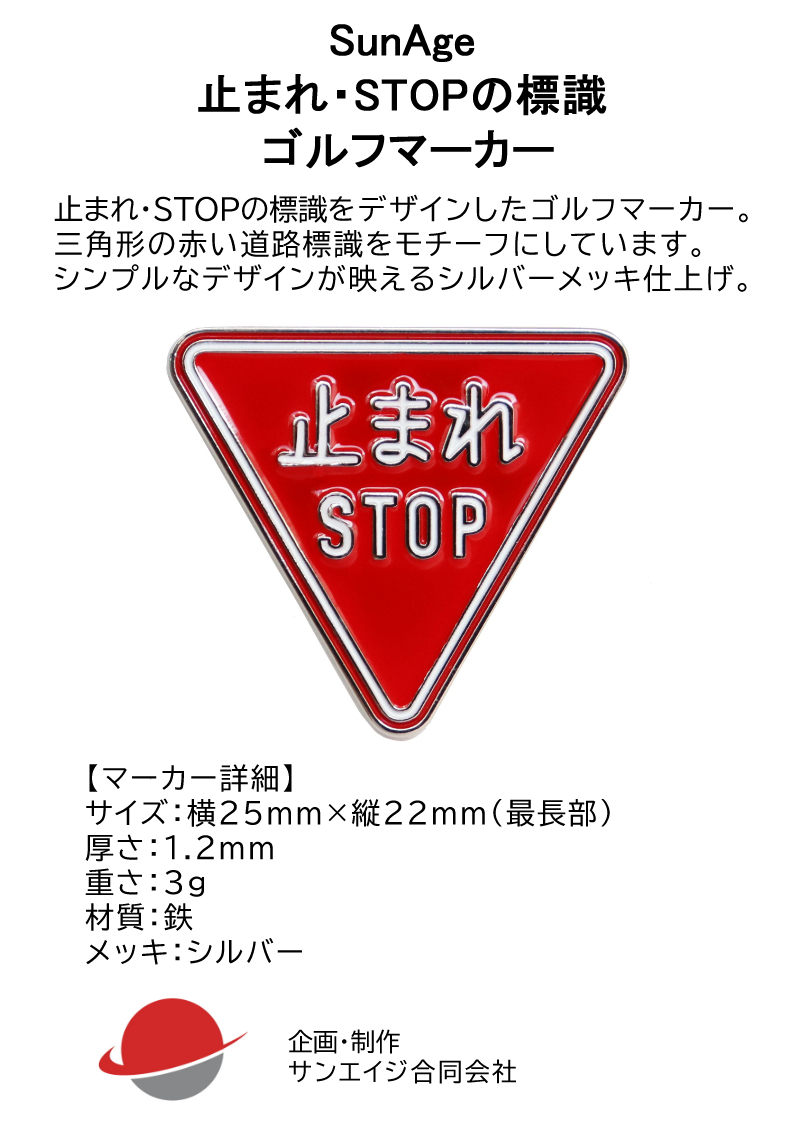 止まれ・STOPの標識をデザインしたゴルフマーカー(ボールマーカー)です。