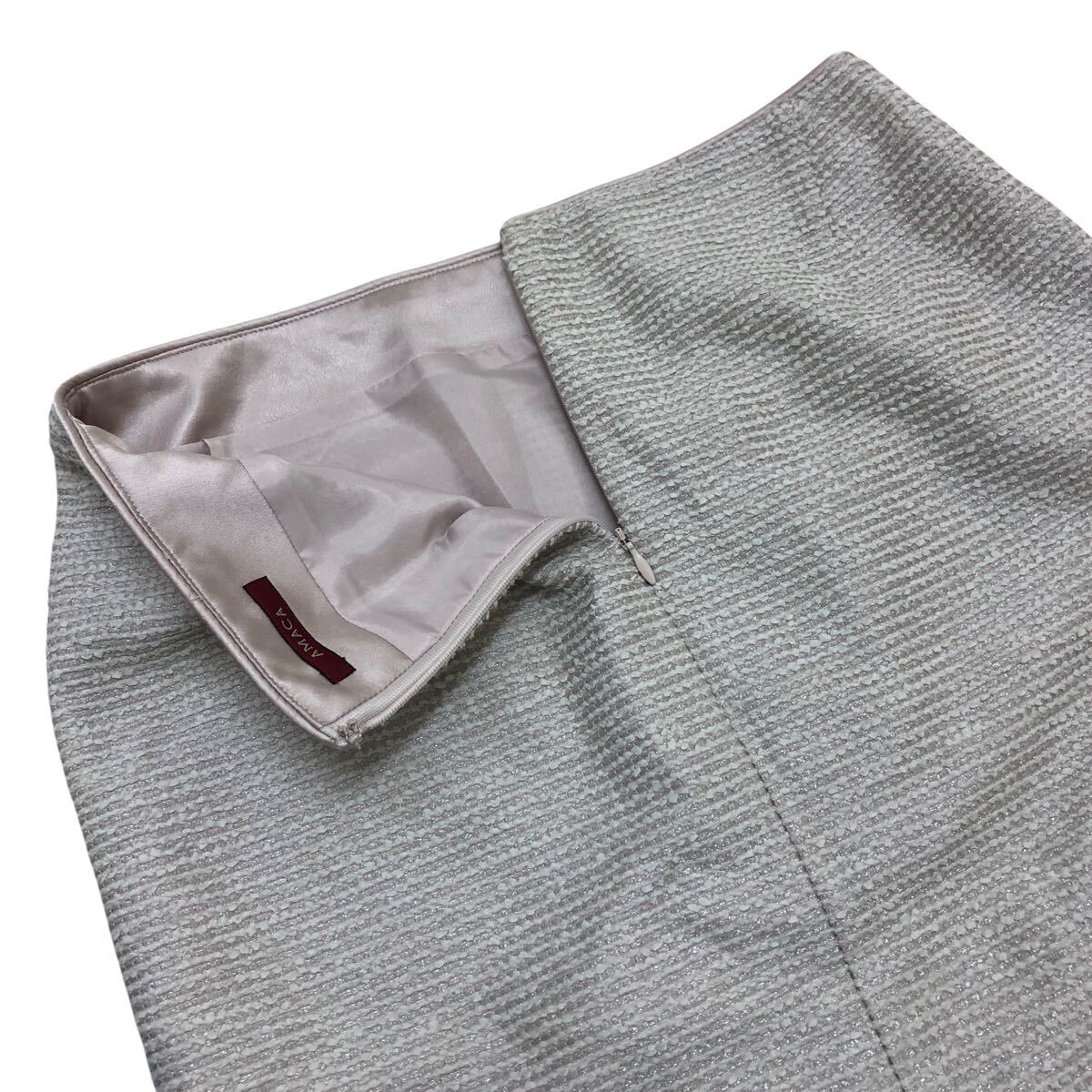 10Nm330-85 AMACA アマカ ラメ ツイード ひざ丈スカート タイトスカート スカート ボトムス スリット ベージュ レディース 38 日本製