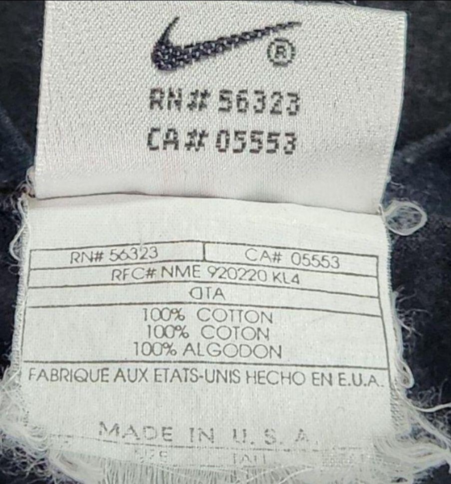 希少なUSA製で、フロントにボックスロゴ風のデザイン、さらに袖にはスウッシュロゴ入り。