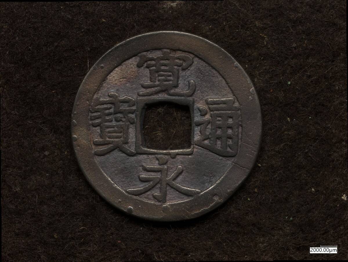 寛永通宝のほか、永楽通宝や、輸入銭の鐚銭など数多くの種類が存在いたします。