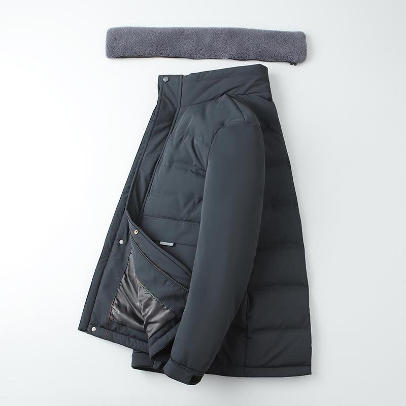 ダウンコート メンズ 無地 ミドル丈 襟ファー 暖かい ビジネスコート 保温 防寒 冬物 ダウンジャケット アウター