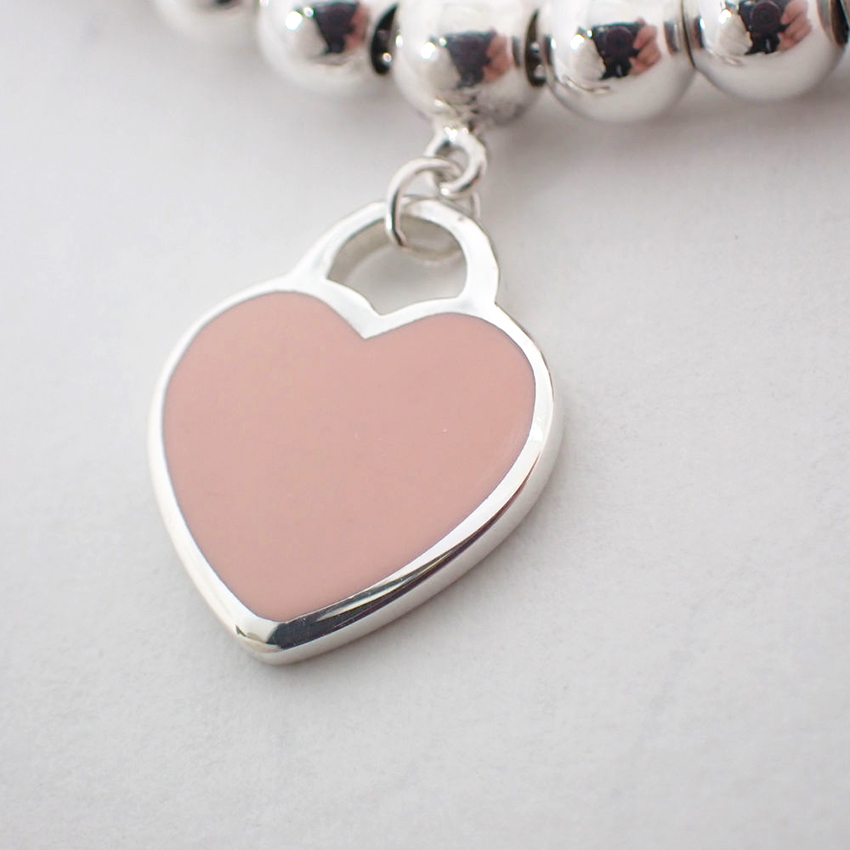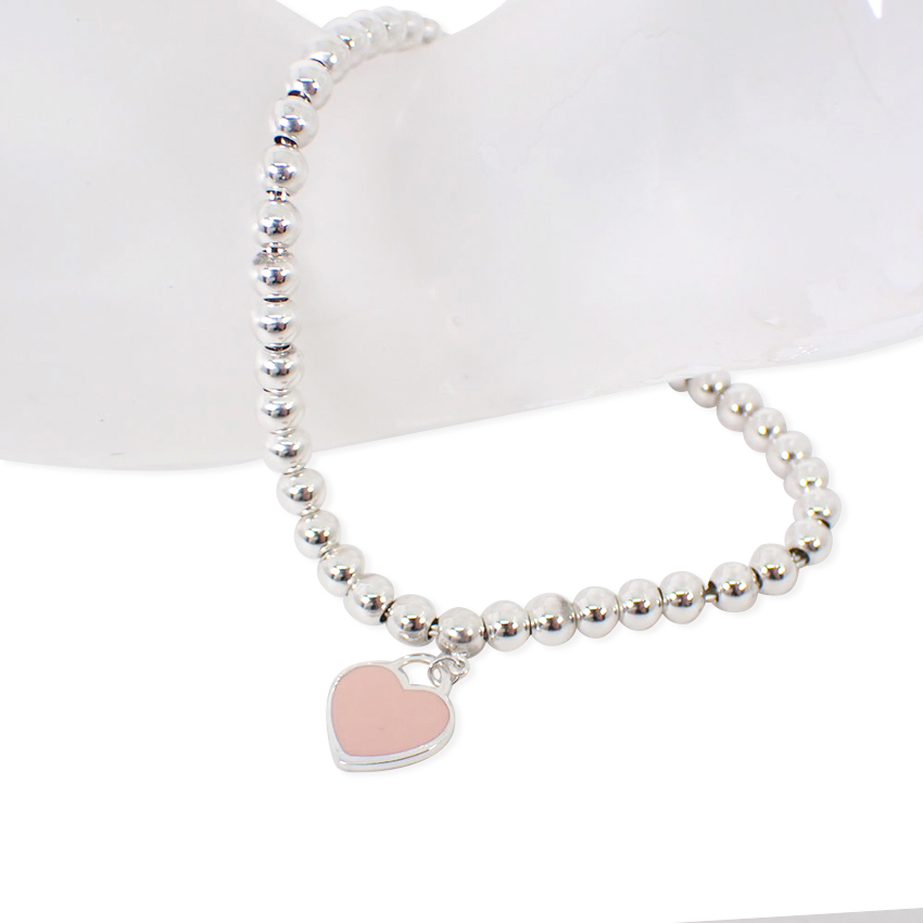 桜の花びらのような美しいピンクのエナメルハートタグが印象的なボールチェーンブレスレットです。ブレスレットは、とてもしなやかで上質な作りです。
