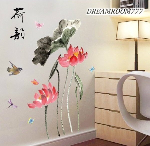和柄 水墨画調 蓮の花 ロータス デカール ウォールステッカー 【C829】インテリアステッカー はがせるシール