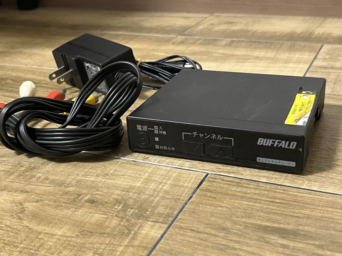 バッファロー BUFFALO 地上デジタルチューナー DTV-S110 です。リモコンはありません。電源ケーブル、AVケーブルが付属します。