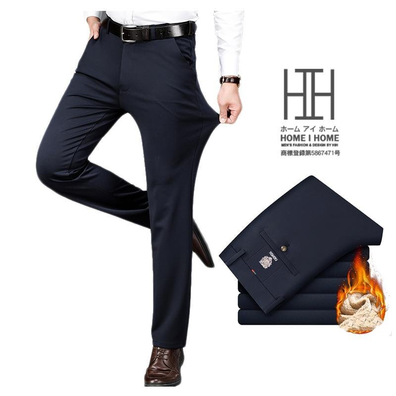 メンズ 裏ボアスラックス 冬服 ビジカジ ストレッチ ビジネス ボアパンツ 防寒 保温 大きいサイズ 無地 水洗い 黒 紺 通勤 スタイリッシュ ボトムス