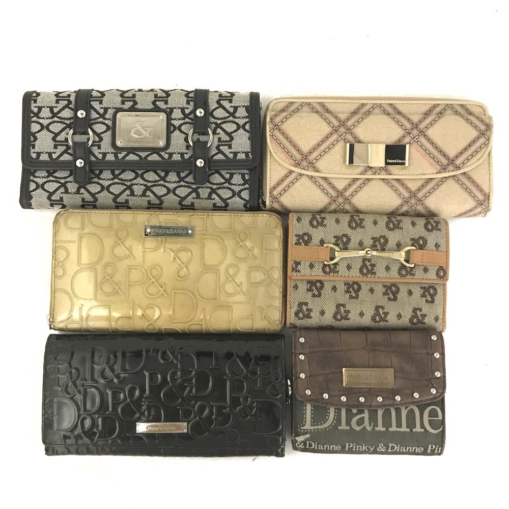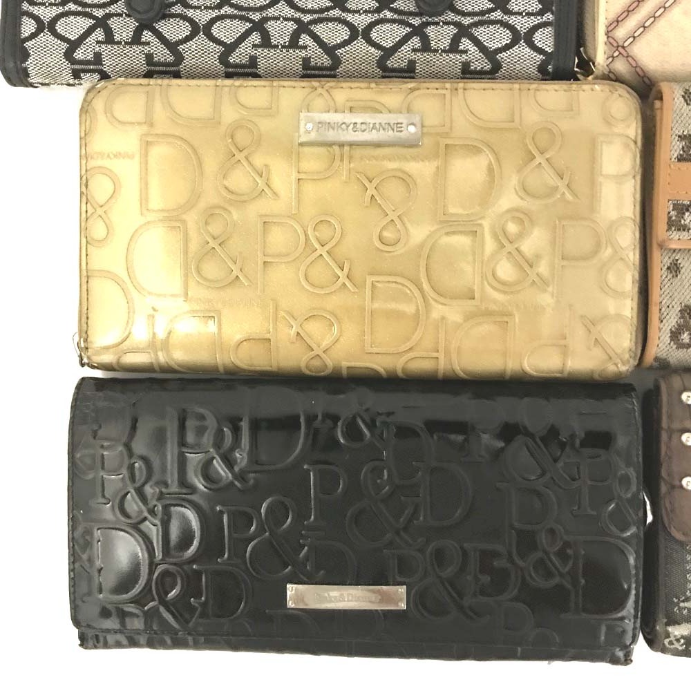 1円 Pinky&Dianne ピンキー&ダイアン キャンバス レザー パテント 二つ折り財布 長財布 ラウンドファスナー 6点セット マルチカラー /ZX1019