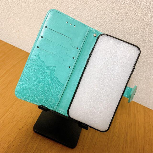 エンボス加工スマホケース 手帳型 iPhone SE2/SE3 グリーン